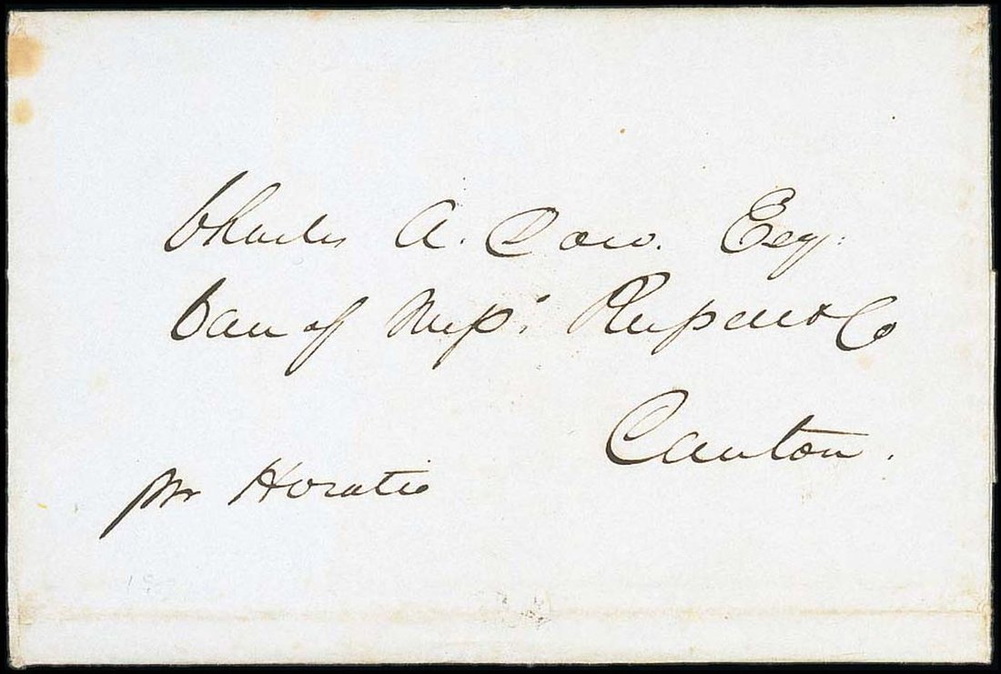 1843年10月12日 给 " Care of Messes Rupeur & Co." Charles Low, 由他的兄弟由Brooklyn 經 "Horatio" 發出的長信. 保存良好.