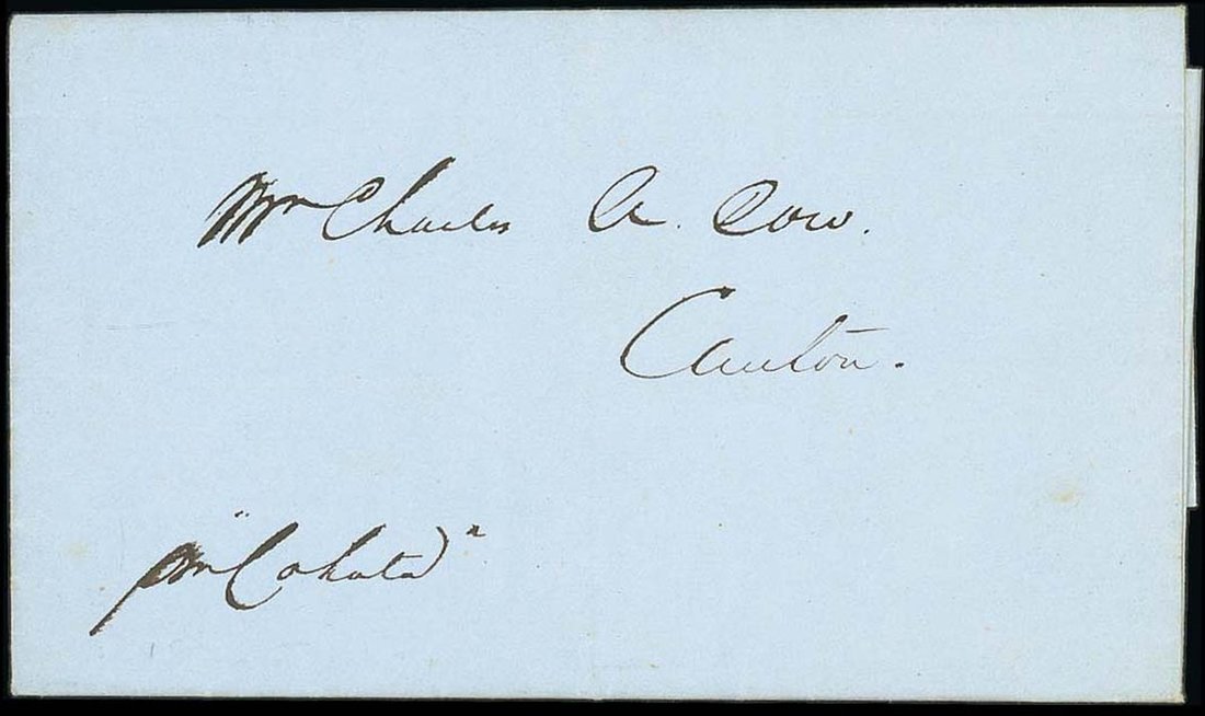 1844 (21 June) long entire letter to Charles Low "pr 'Colata'" from his brother in Brooklyn. Carried privately and without any postal marking. A clean letter. Photo