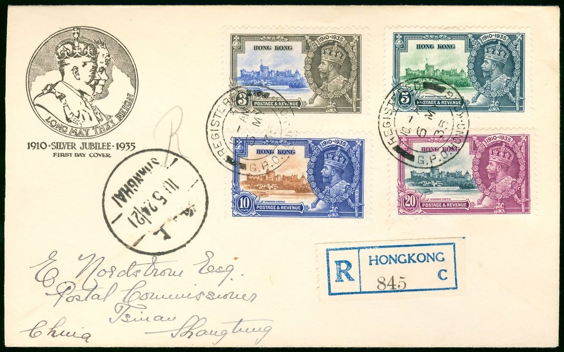 1935 (6 May) Silver Jubilee set of four on Graca & Co. cacheted registered first day cover to Tsinan (12.5), fine. Yang C2-C5
