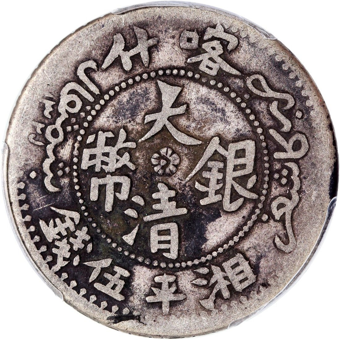 1907年新疆喀什光緒銀元湘平五錢,有包漿,PCGS VF25