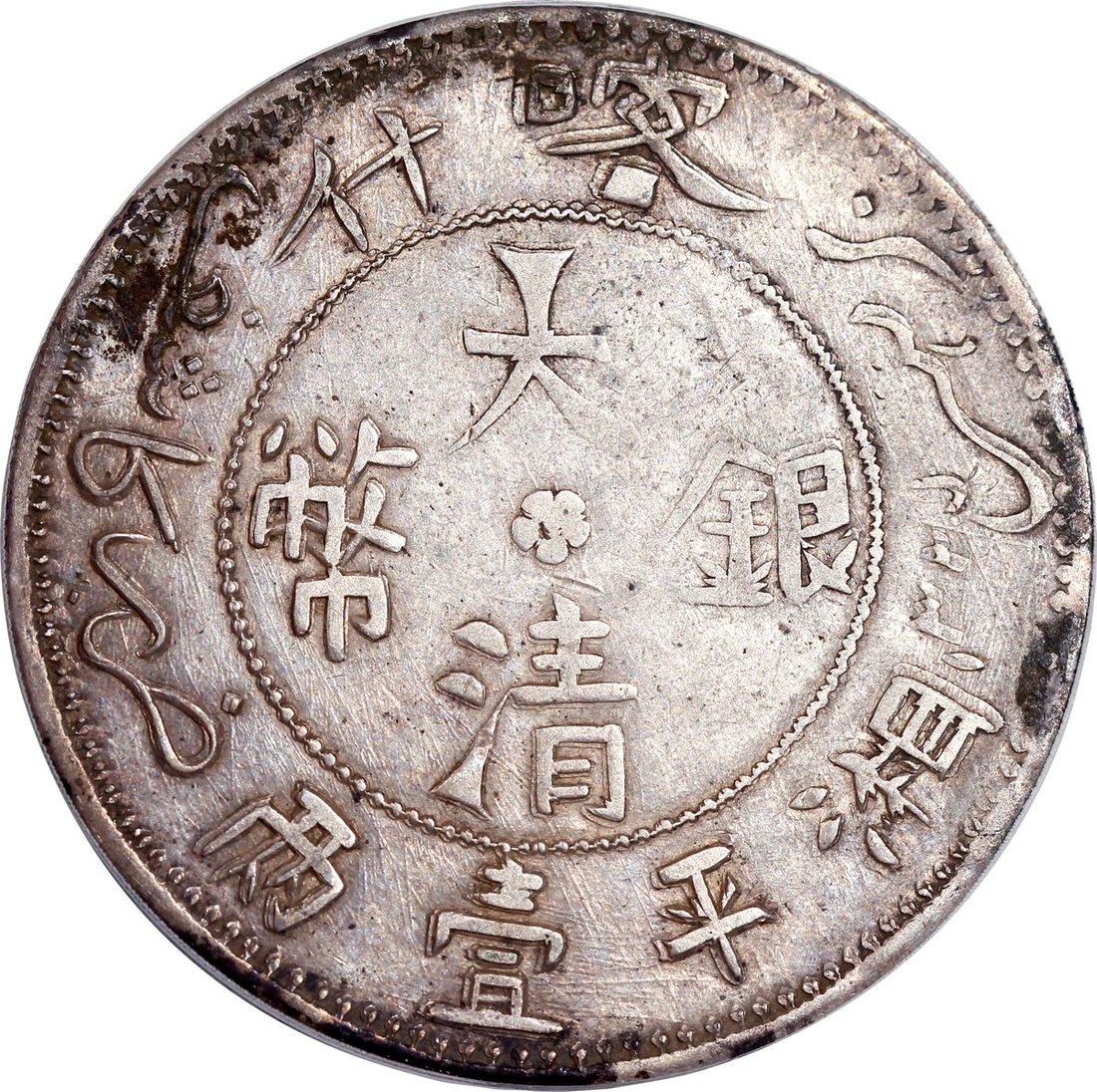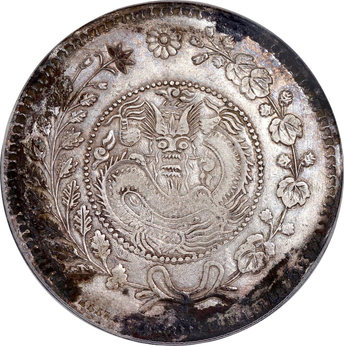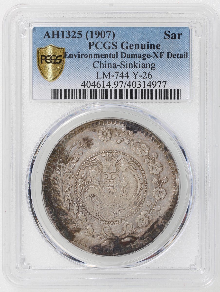 1907年新疆喀什大清銀幣湘平壹両,新疆銀幣名譽品,難得靚品相,PCGS XF Detail,環境損害