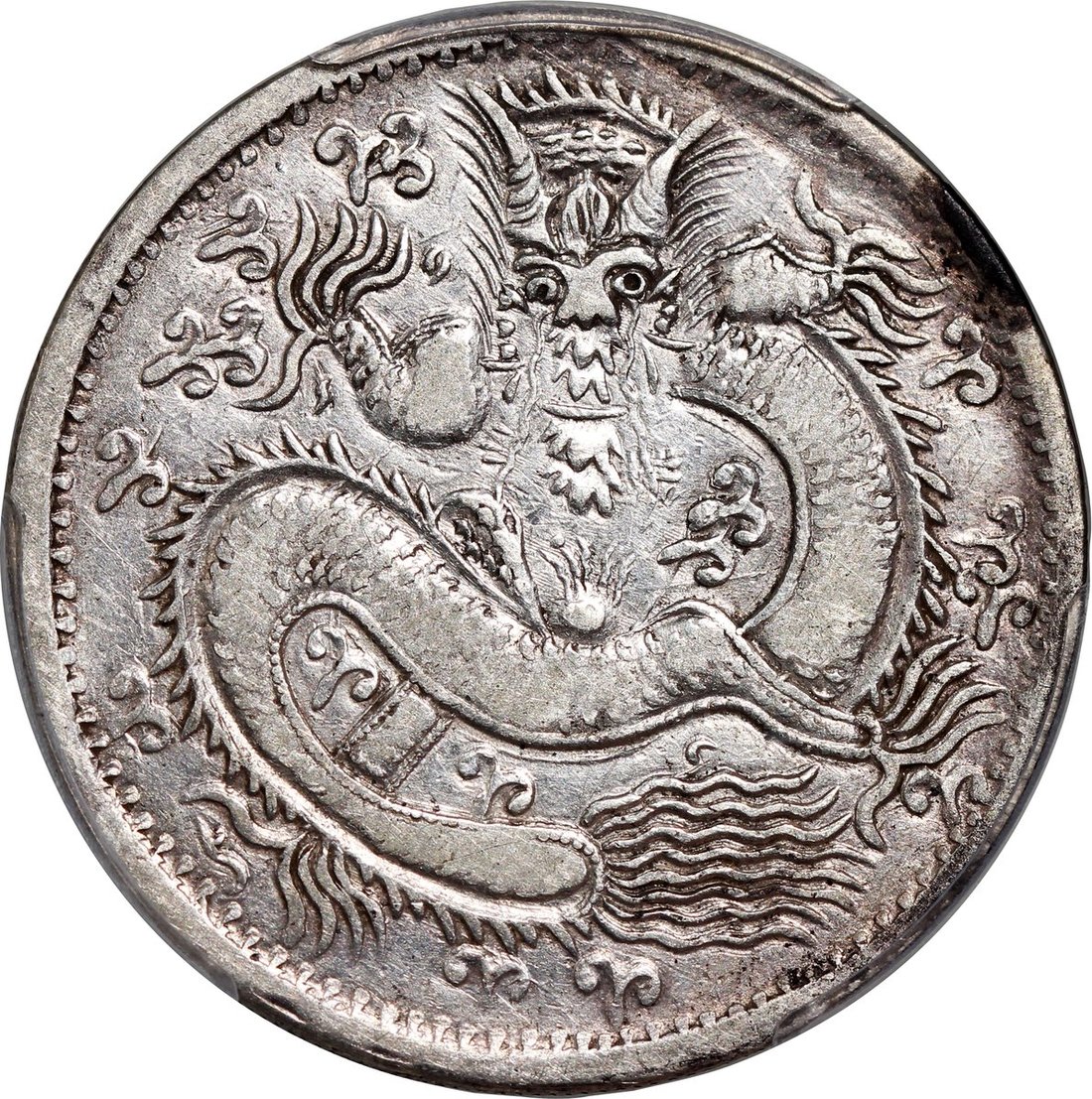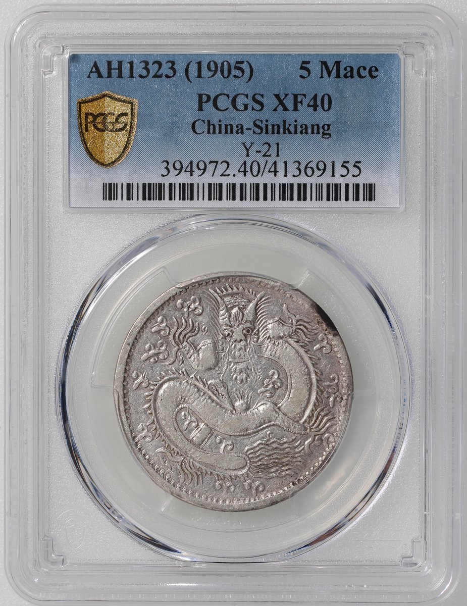 Sinkiang Province, silver 5 mace, AH1323(1905), Kashgar, Guangxu Yuan Bao, dragon on obverse, (Y-21), toned, PCGS XF 40.