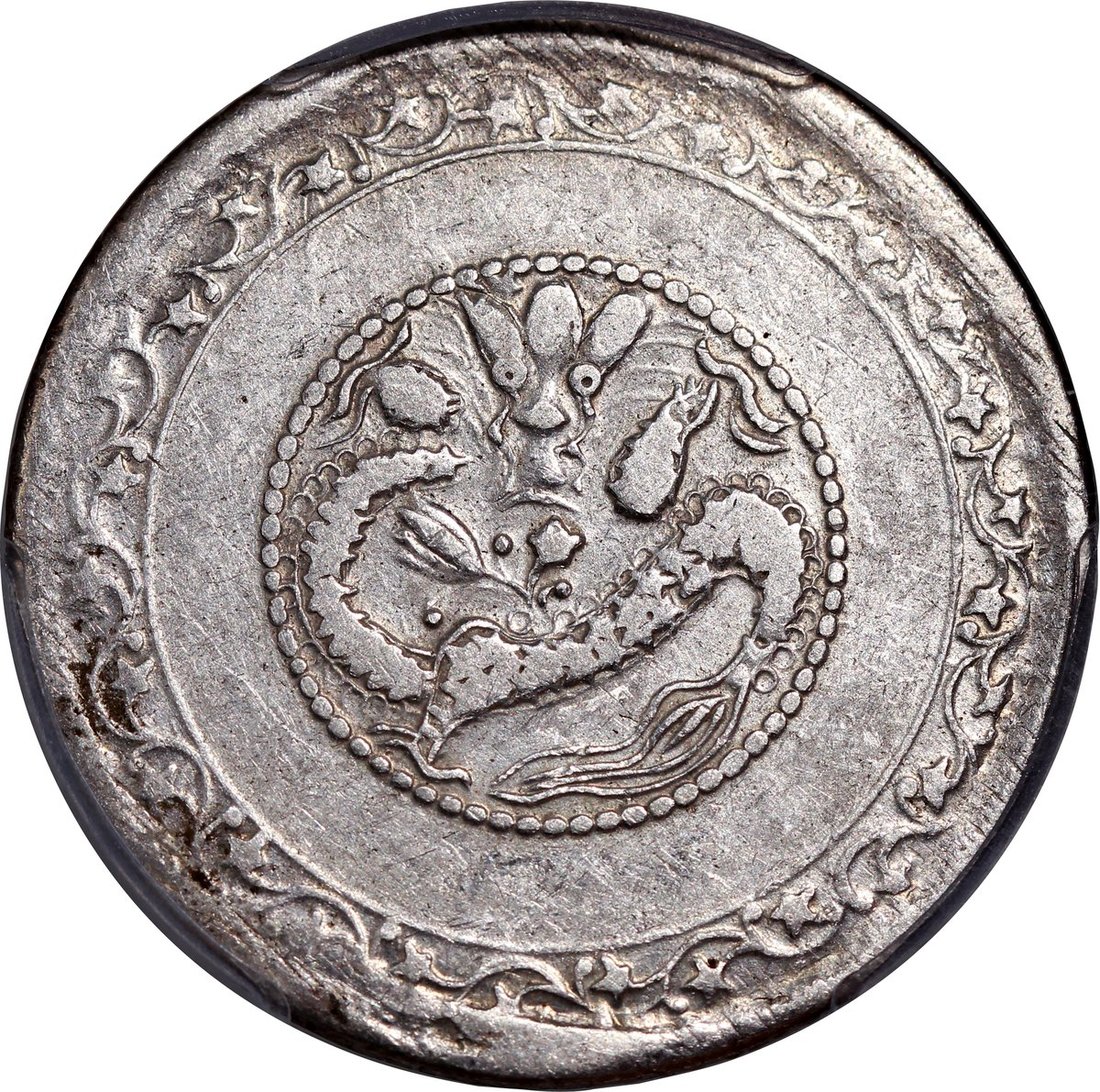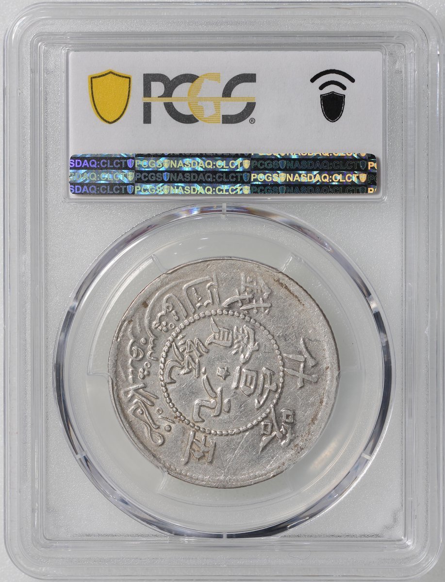 Sinkiang Province, silver 5 mace, AH1329(1911), Kashgar, Xuantong Yuan Bao, dragon on obverse, (Y-A28), toned, PCGS XF45.