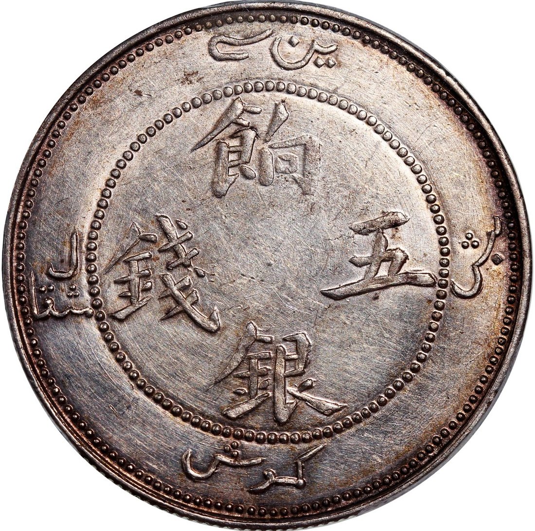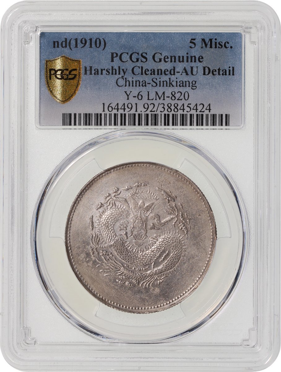 Sinkiang Province, silver 5 miscals, ND (1910), (Y-6, LM-820), PCGS AU Detail (Harshly Cleaned)
