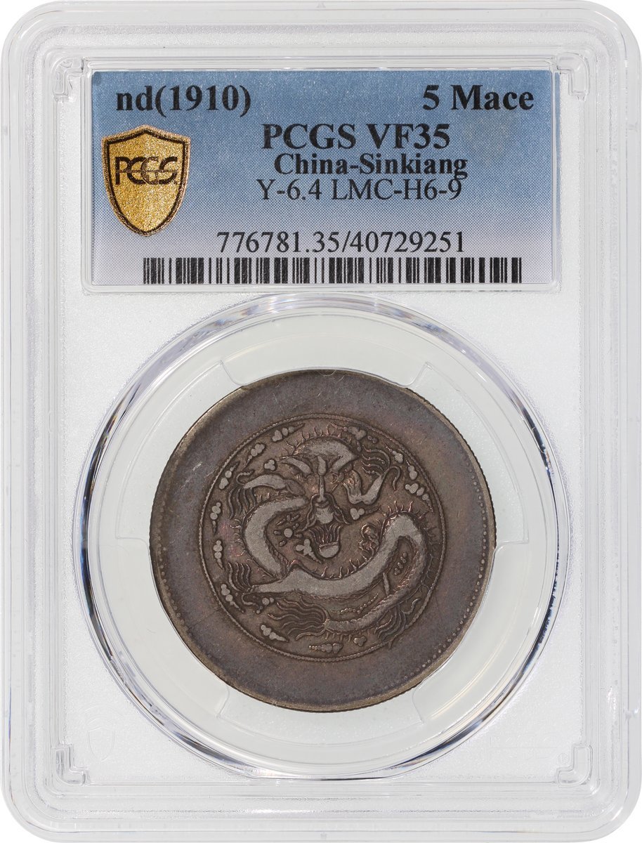 Sinkiang Province, silver 5 mace, ND(1910), Xianyin Wu Qian, (Y-6.4), PCGS VF 35.