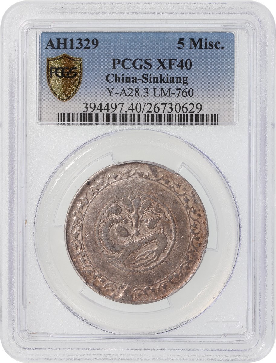 Sinkiang Province, silver 5 miscals, Kashgar, A.H. 1329 (1911), (Y-A28.3, LM-760), PCGS XF40