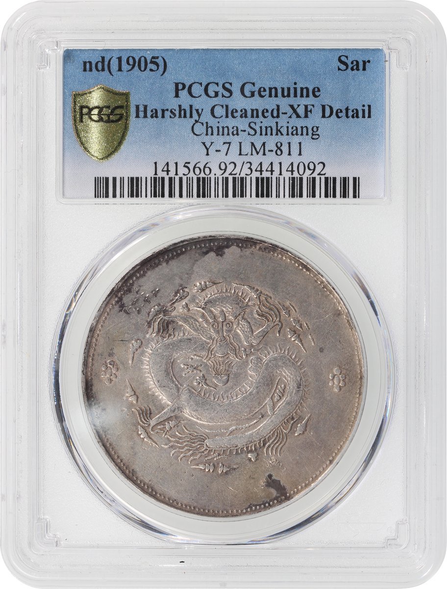 1905年新疆餉銀一兩,PCGS XF Detail,嚴重清洗