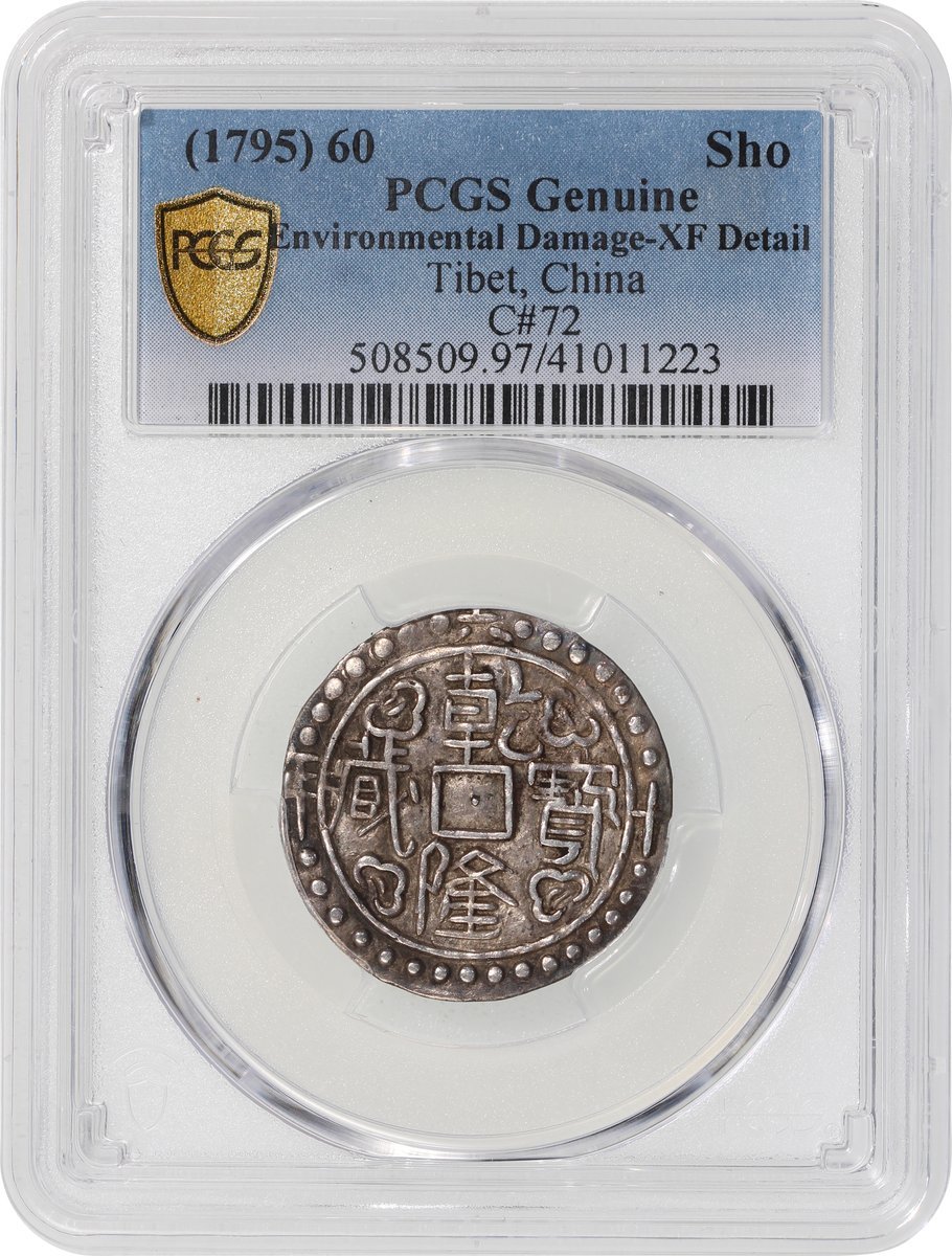 Tibet, silver 1 sho, Year 60(1795), Qianlong Baozang, (C#72), PCGS XF Detail, environmental damage.