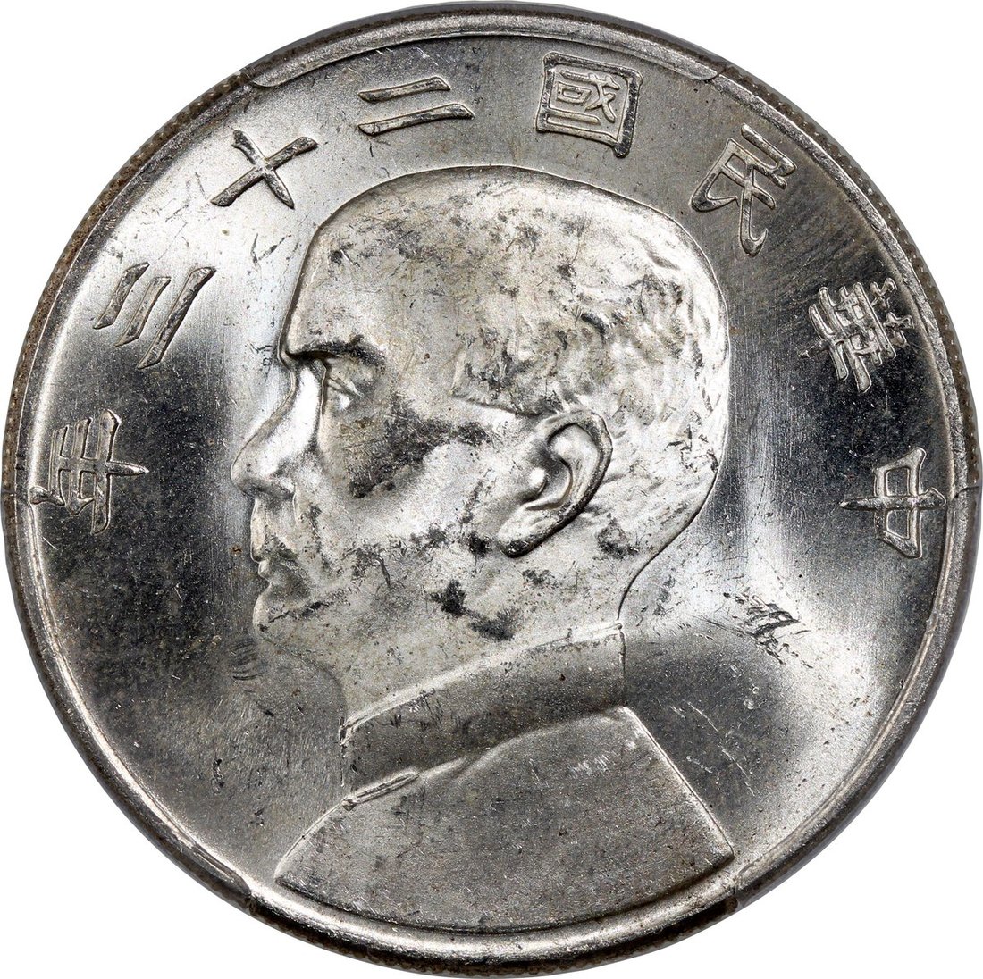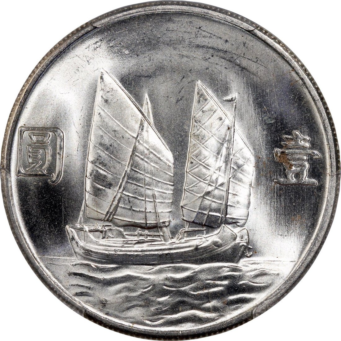 民國二十三年孫中山像帆船壹圓銀幣一對,均PCGS MS63