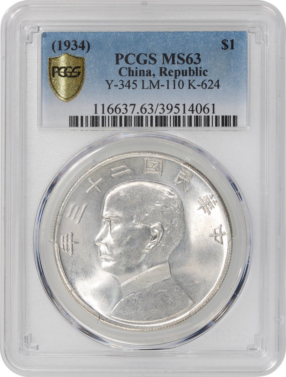 China, Republic, a pair of silver $1, Year 23(1934), Junk dollar, (LM-110, Y-345), both PCGS MS63.(2)
