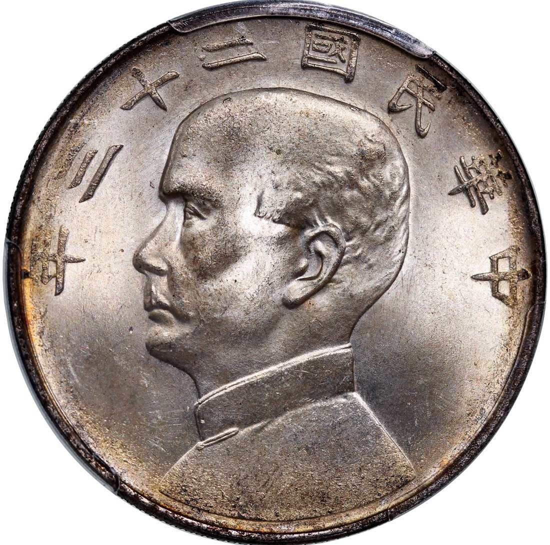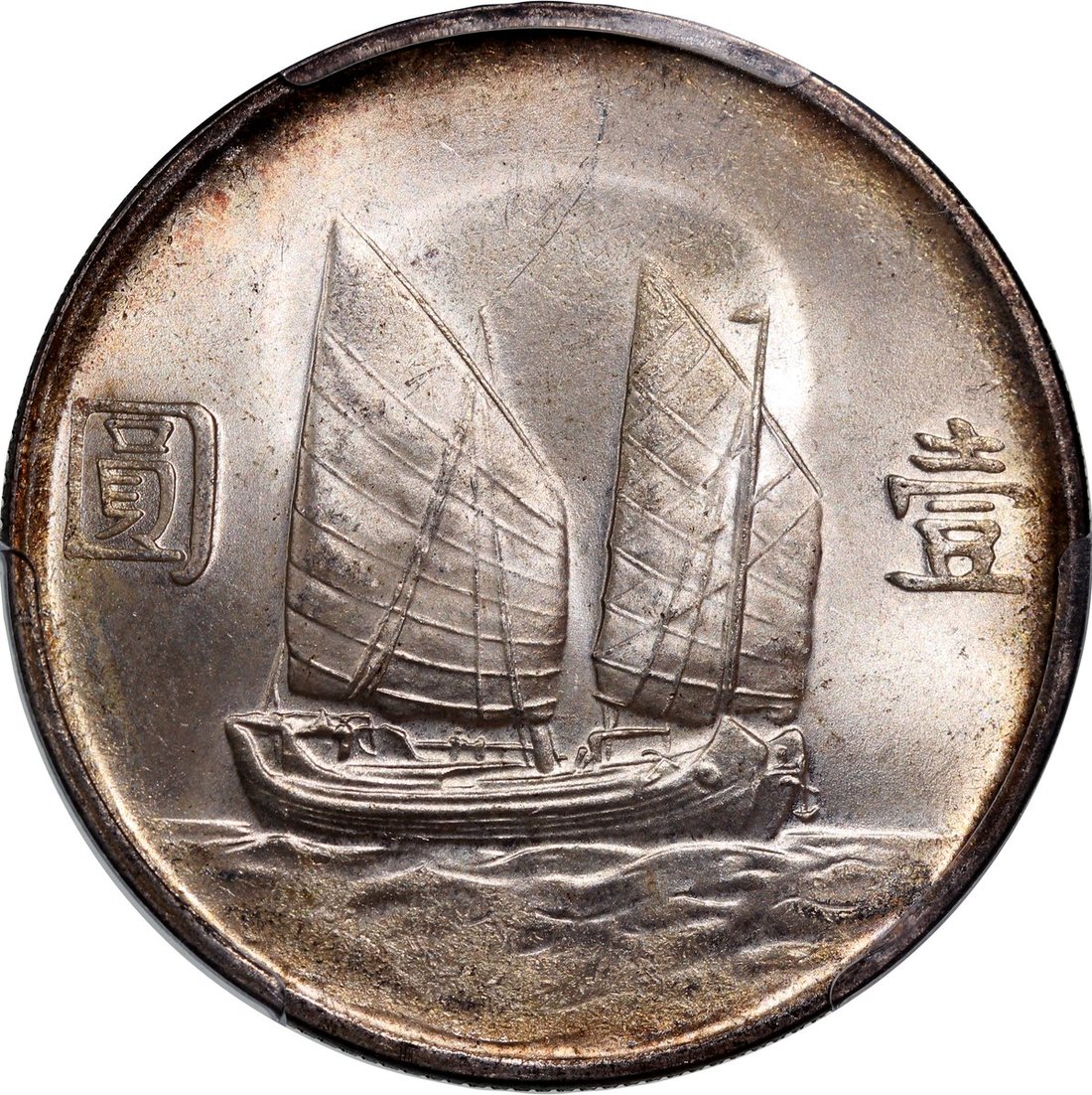 民國二十三年孫中山像帆船壹圓銀幣,PCGS MS64+