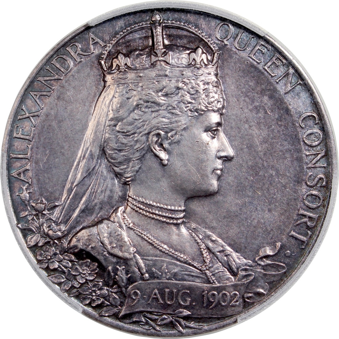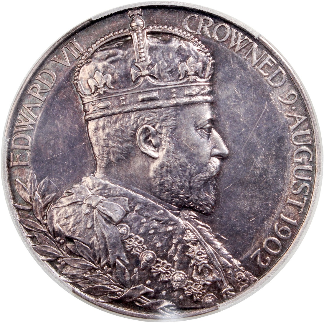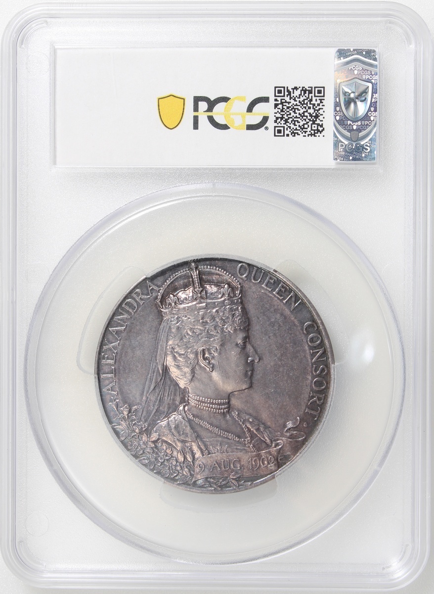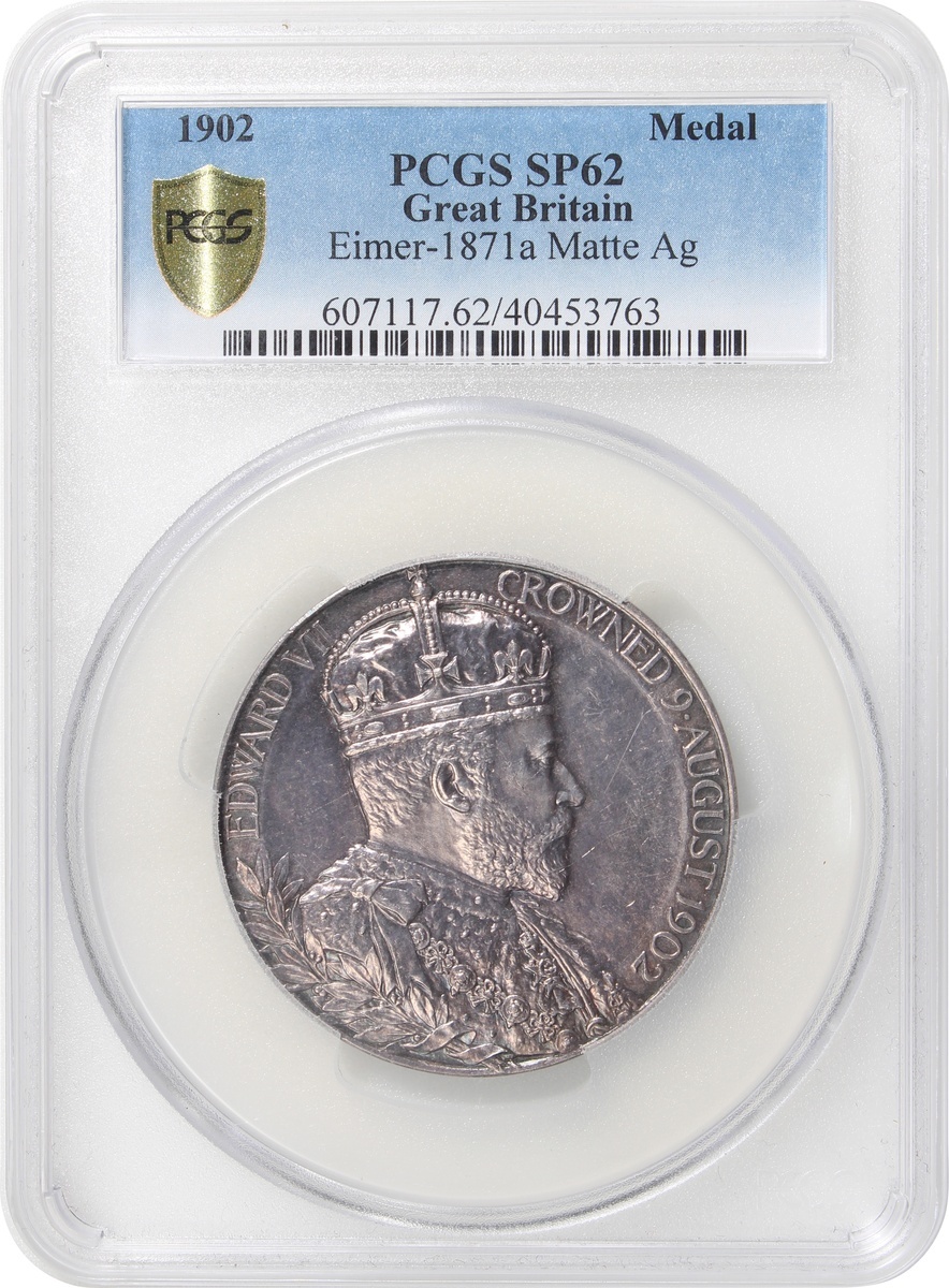 1902年英國'MATTE'銀章一枚,正面有愛德華七世像,PCGS SP62,編號40453763