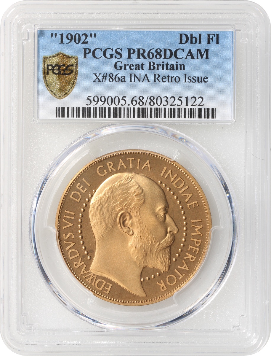 Great Britain, bronze retro issue, double florin, '1902', Edward VII at obverse, PCGS PR68DCAM, #80325122, only two graded and this is the highest grade in the PCGS population report.