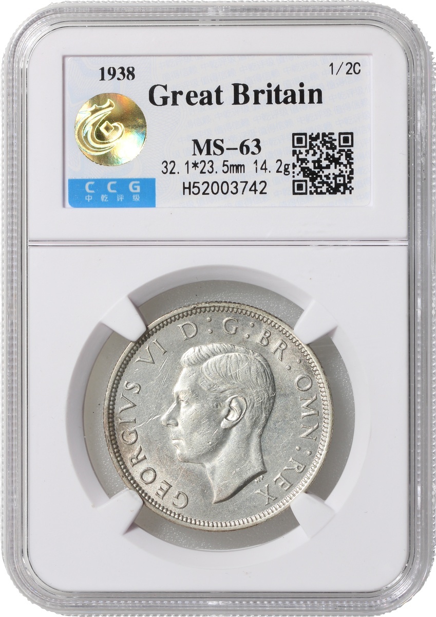 Great Britain, silver 1/2 crown, 1938, George VI at obverse, Zhong Qian MS63