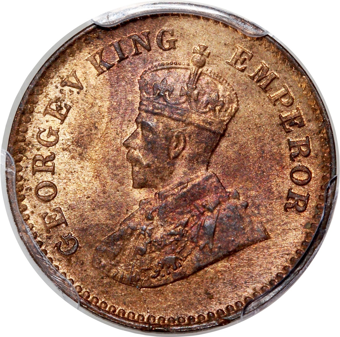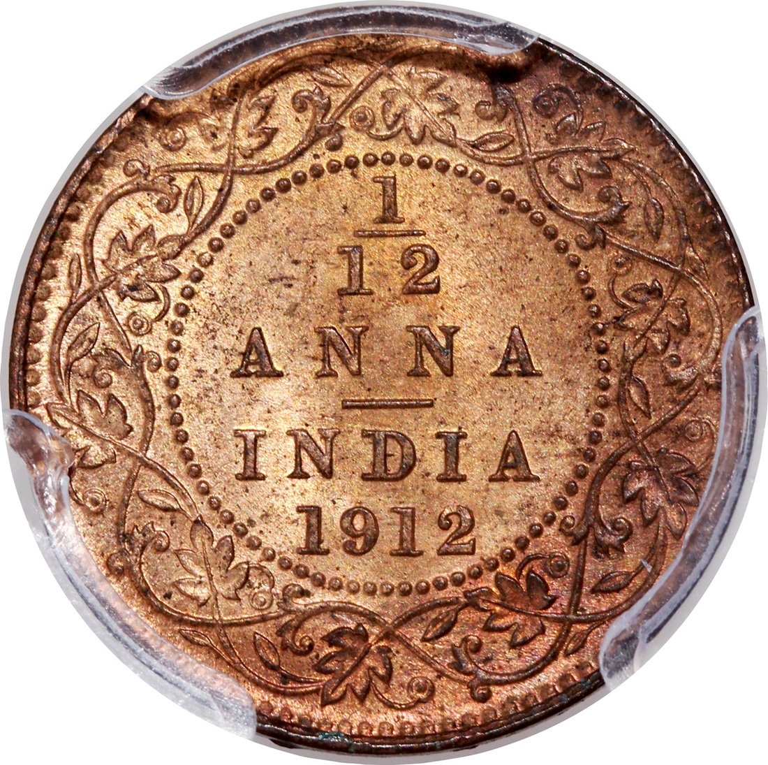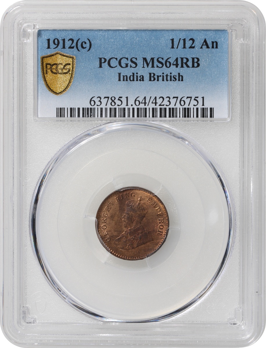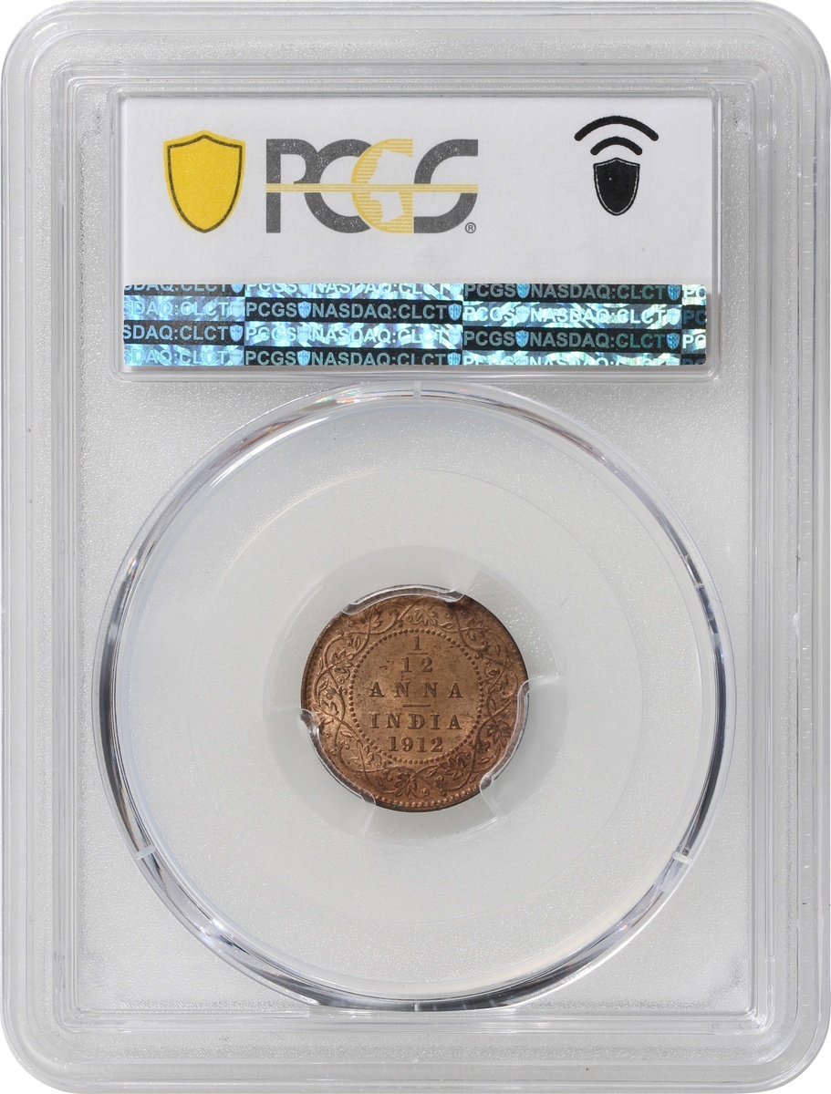 India British, copper 1/12 annas, 1912, George V on obverse, PCGS MS64RB. #42376751