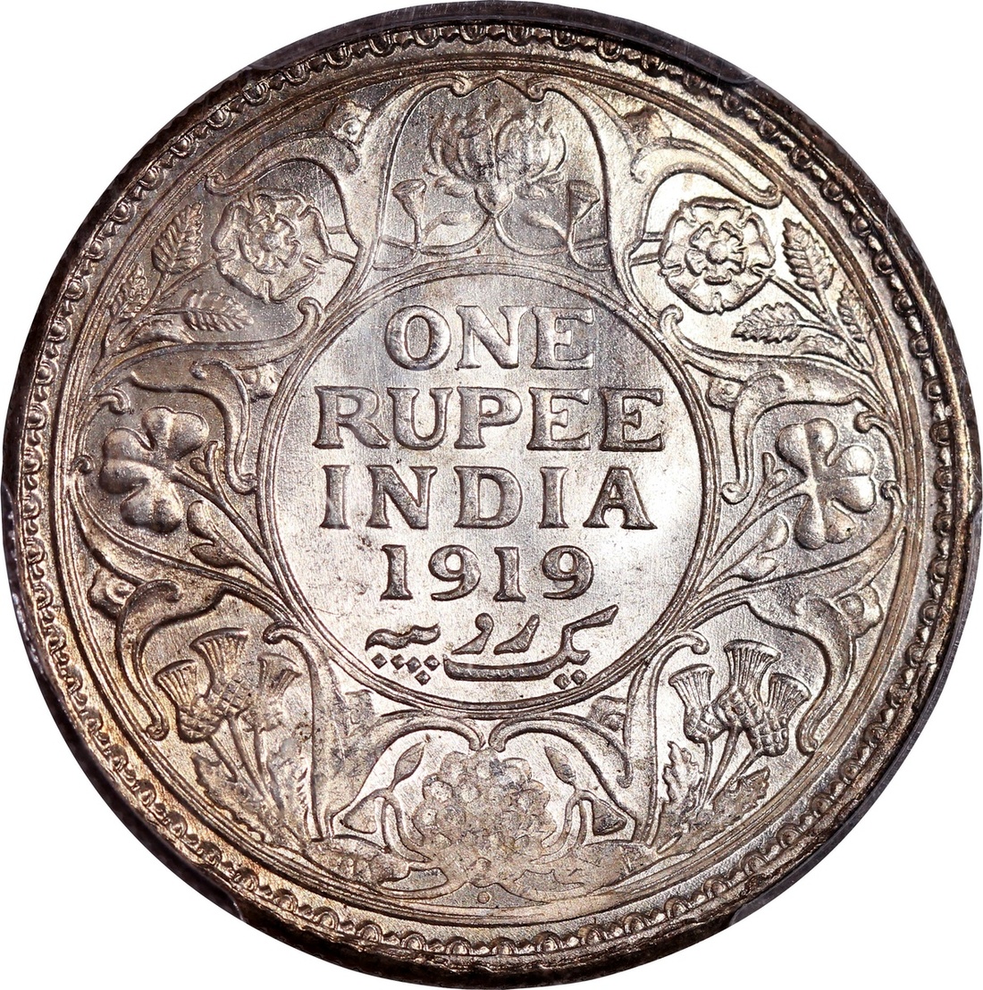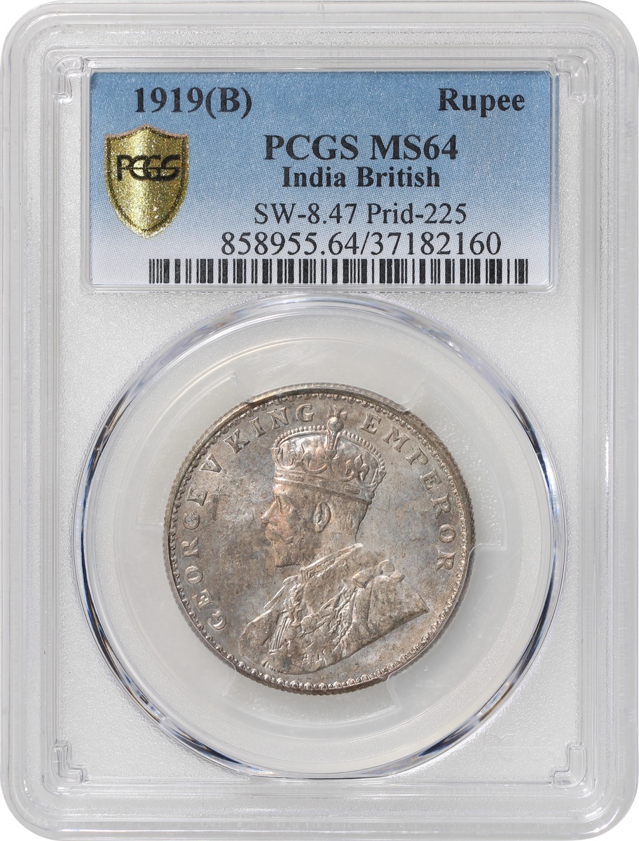 1919 (B)英屬印度1盧比,PCGS MS64