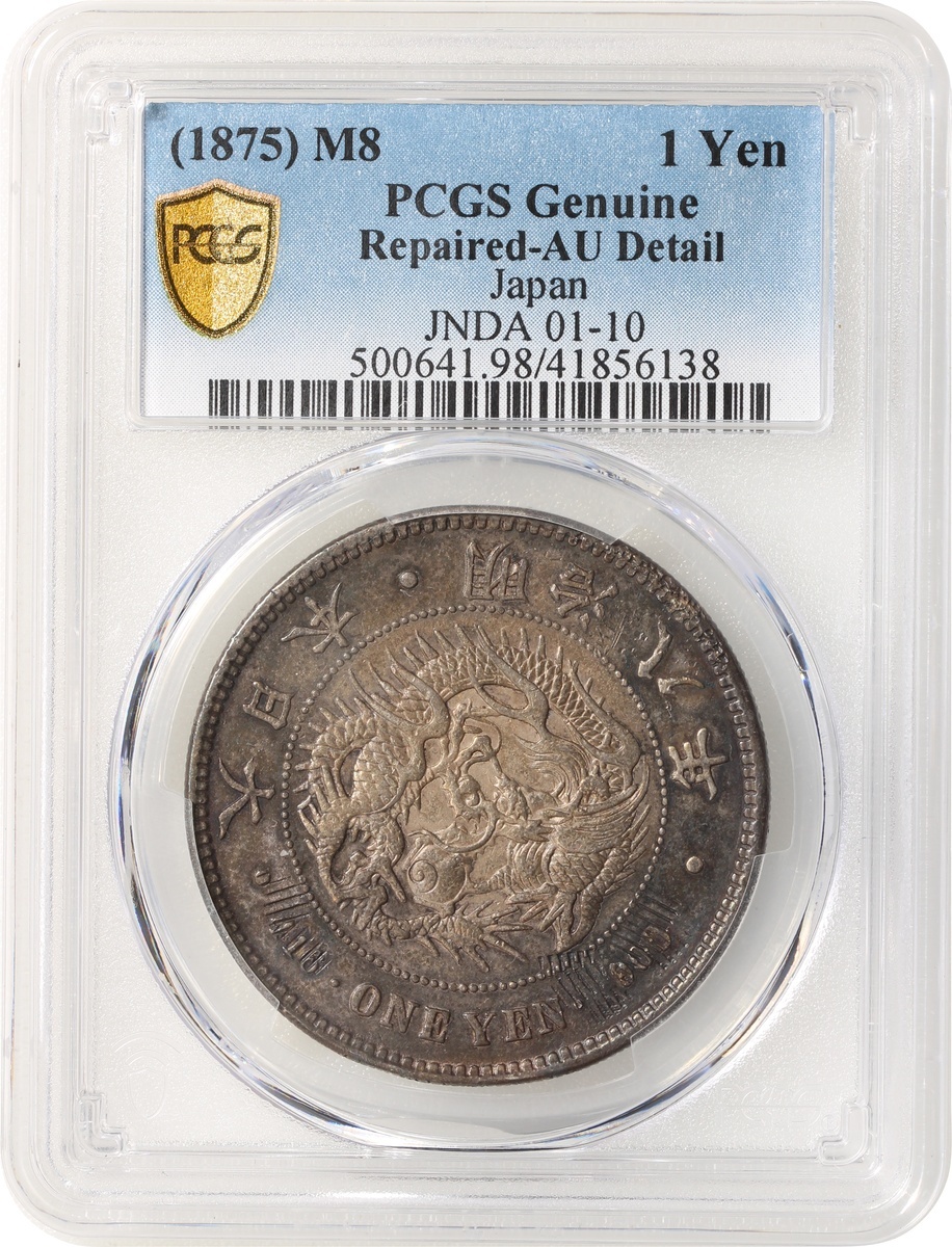 明治8年(1875)日本1 元銀幣,深色包漿,PCGS AU Detail,有修補