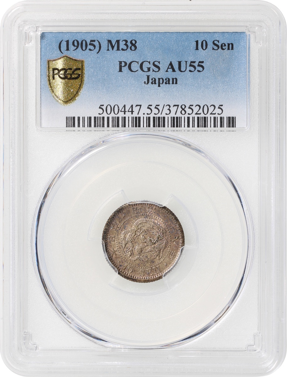 明治38年 (1905)日本10 錢銀幣,PCGS AU 55,編號37852025