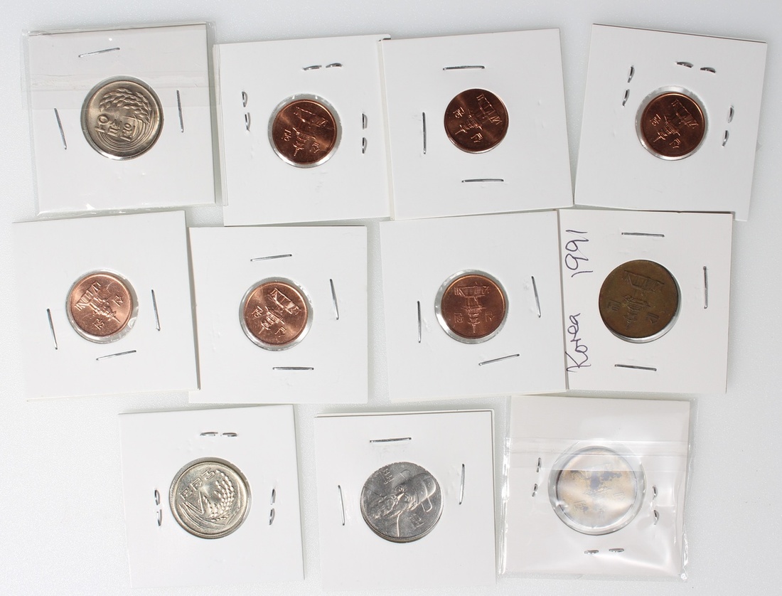 昭和 3-12年 (1928-1937)日本50 錢銀幣一組10枚,及1枚1991年南韓10元,大致UNC品相,若干有原光,建議預覽