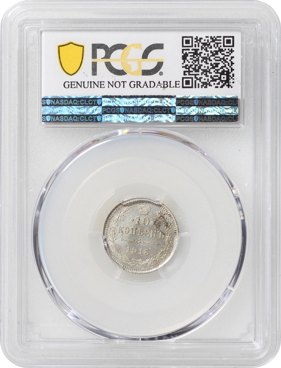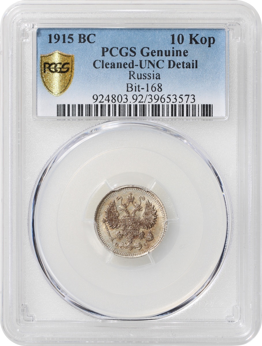 Russia, silver 10 kopek, 1915-BC, (Bit-168), PCGS Genuine Cleaned - UNC Detail