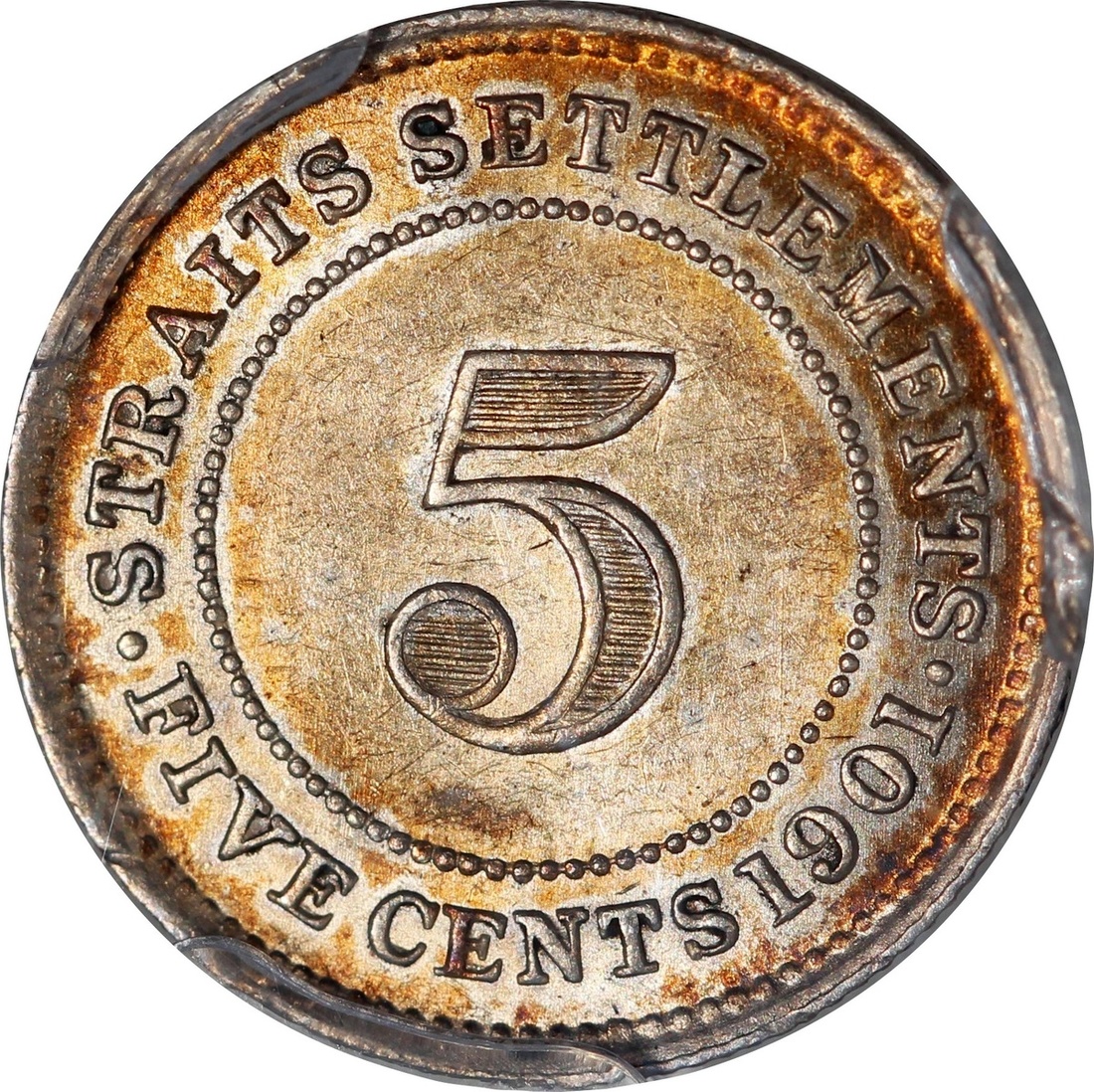 Straits Settlements, silver 5 cents, 1901, (KM-10), PCGS AU55