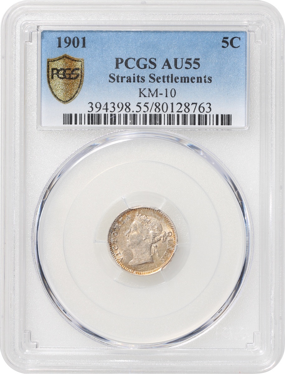 1901年海峽殖民地5仙銀幣,PCGS AU55