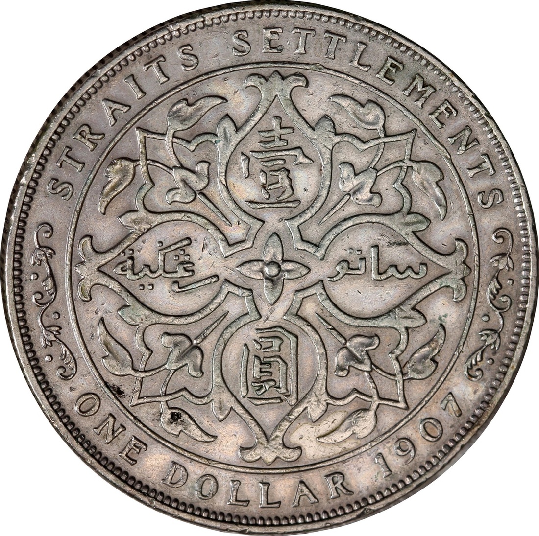 Straits Settlements, silver $1, 1907, Edward VII on obverse, cleaned, extremely fine.