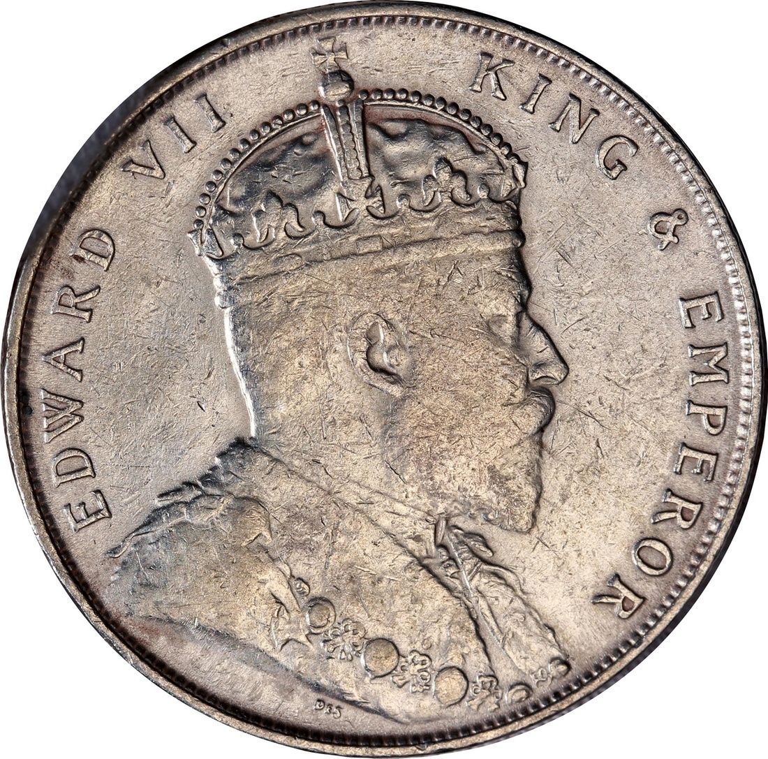 1907年海峽殖民地1元銀幣,EF品相,有清洗