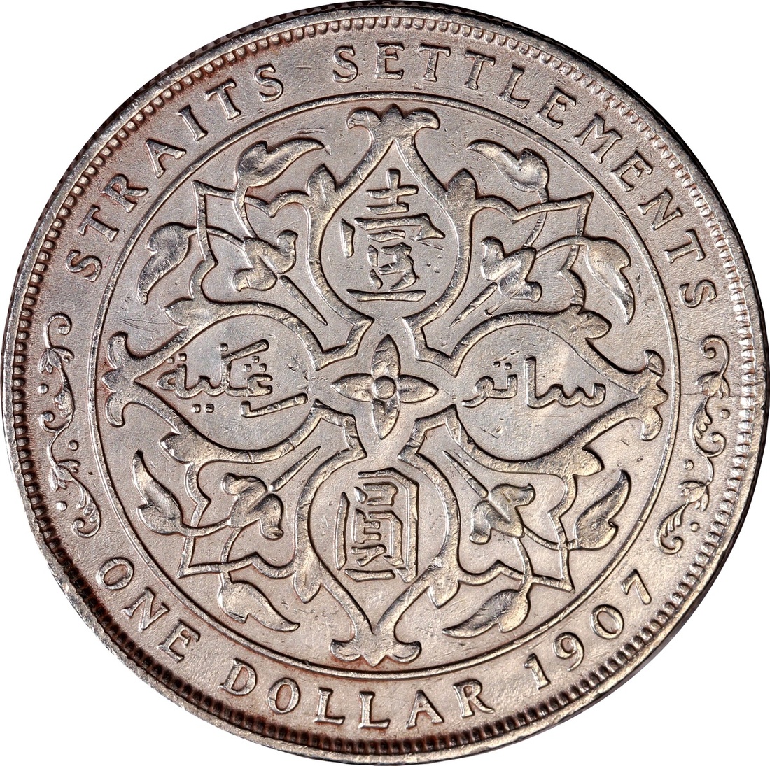 Straits Settlements, silver $1, 1907, Edward VII on obverse, cleaned, extremely fine.