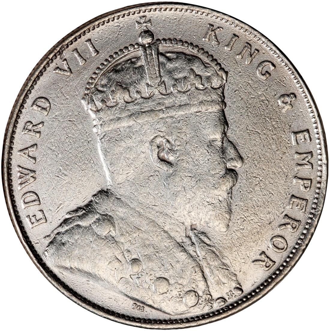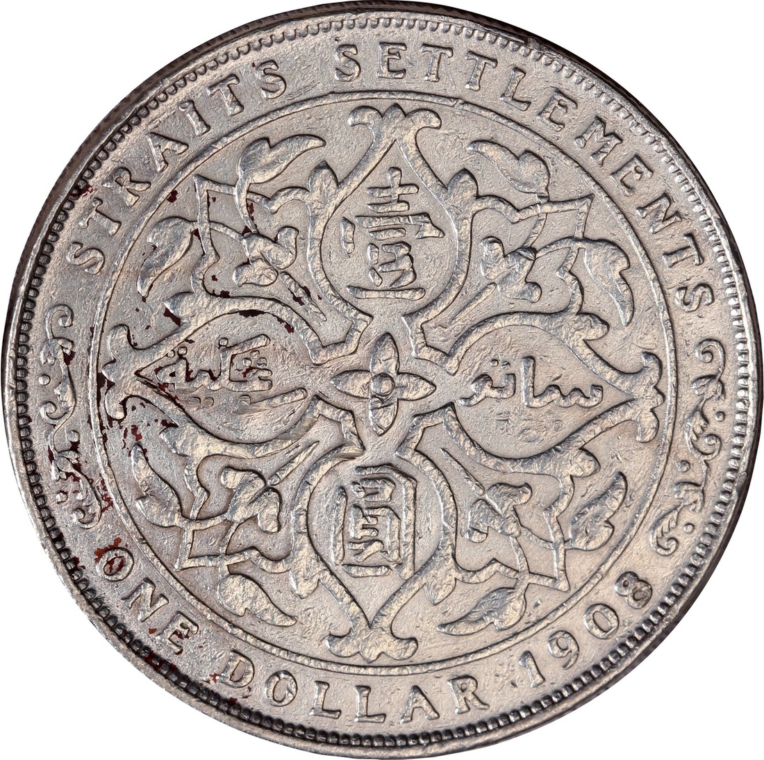 1908年海峽殖民地1元銀幣,GVF品相,有清洗