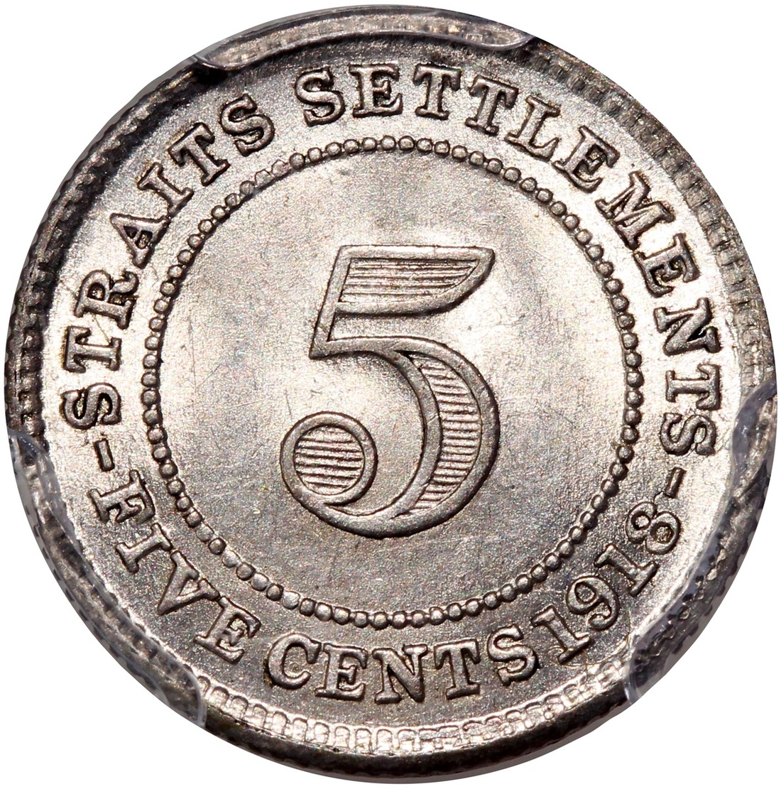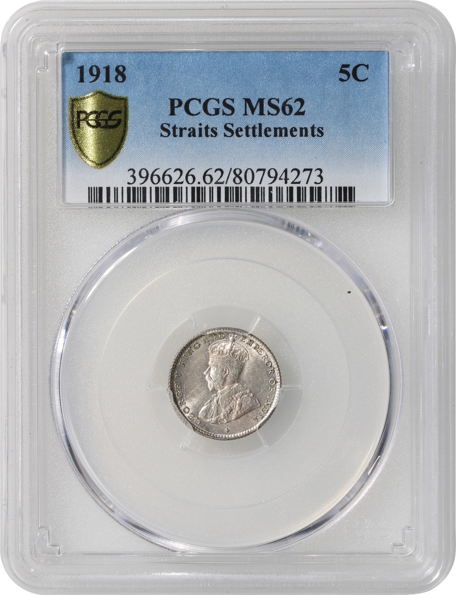 Straits Settlements, a pair of silver 5 cents, 1918 and 1926, graded PCGS MS62 and NGC MS62, #80794273 and #4970304-005 respectively (2)