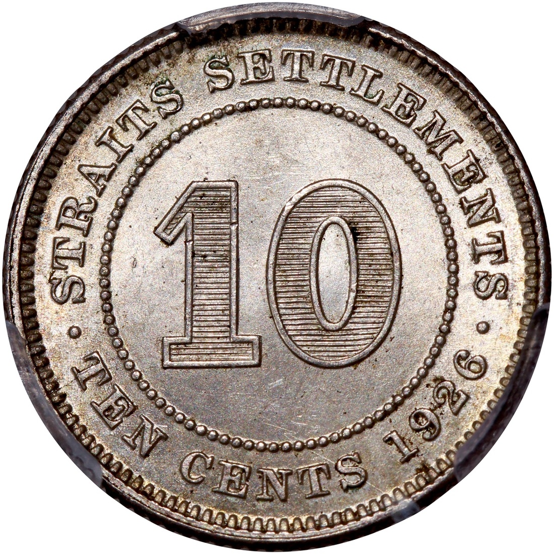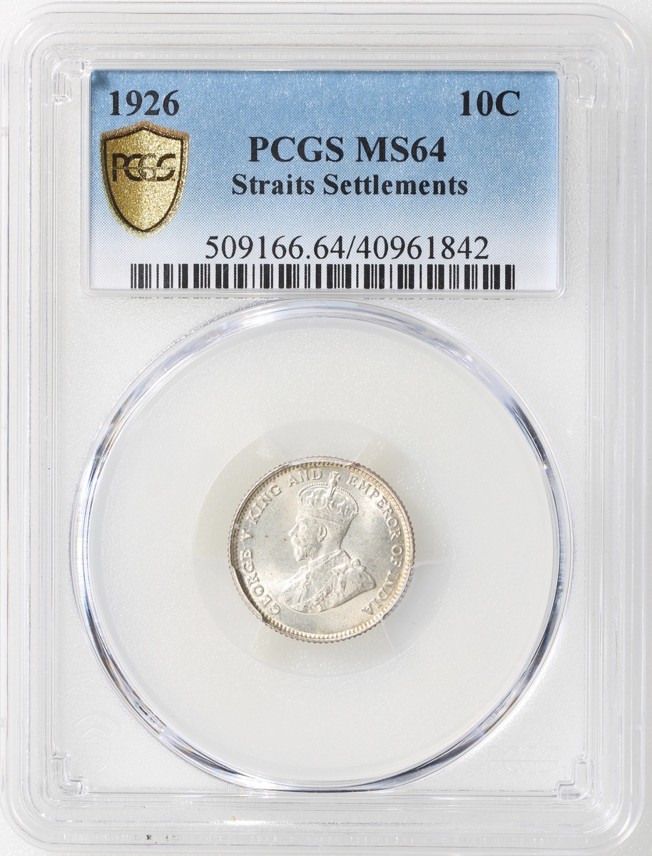 Straits Settlements, silver 10 cents, 1926, PCGS MS64, #40961842.