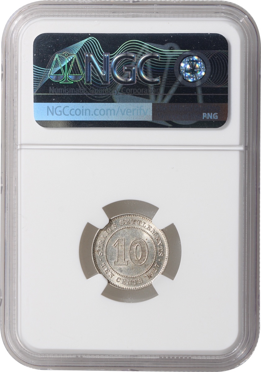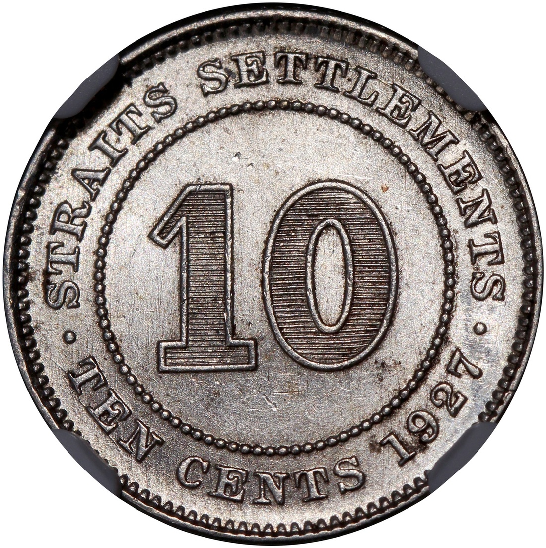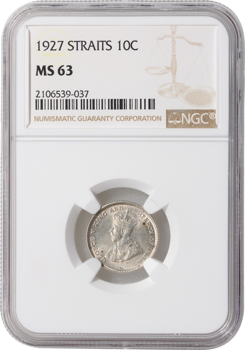 Straits Settlements, silver 10 cents, 1927, NGC MS63, #2106539-037.