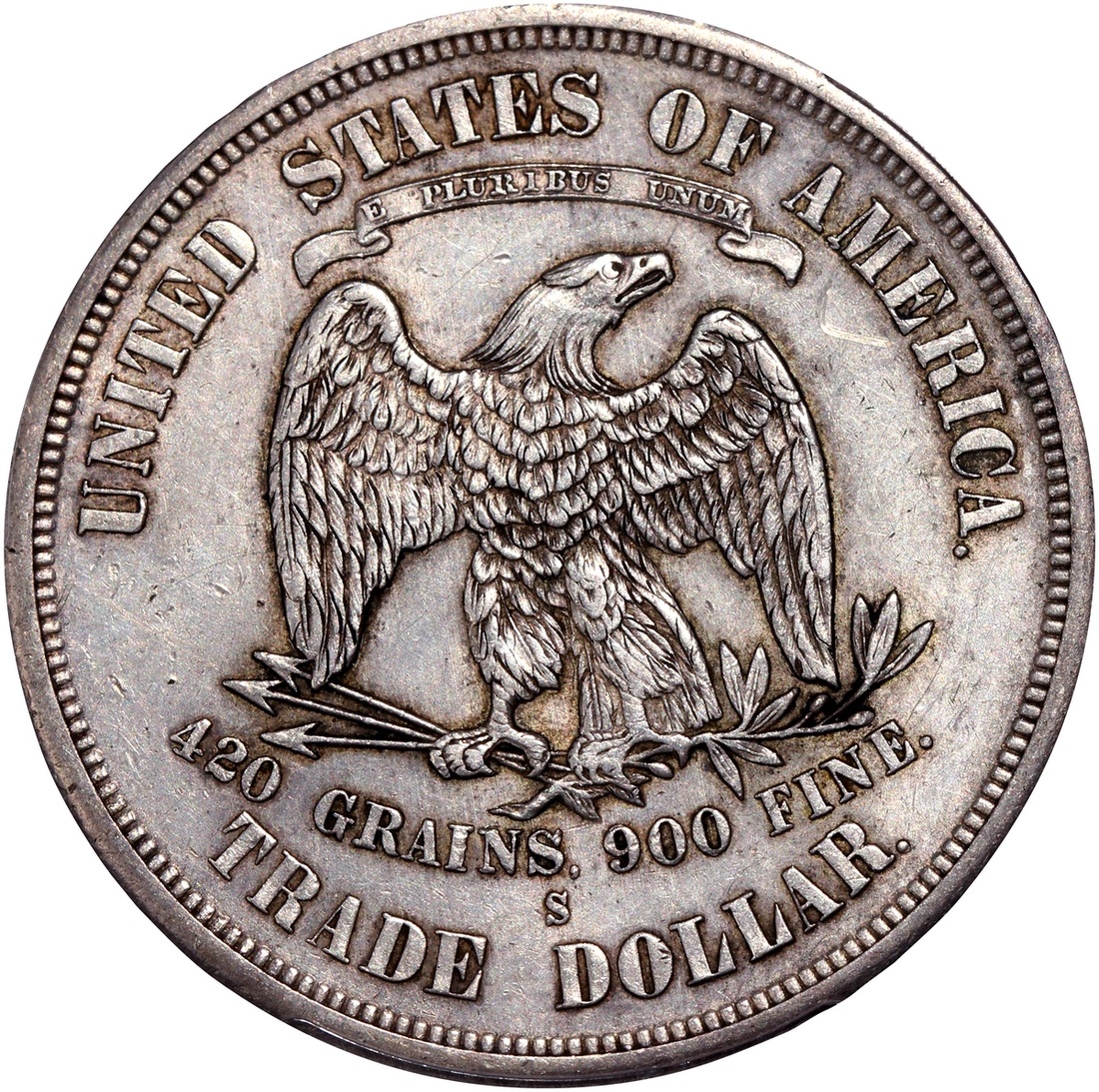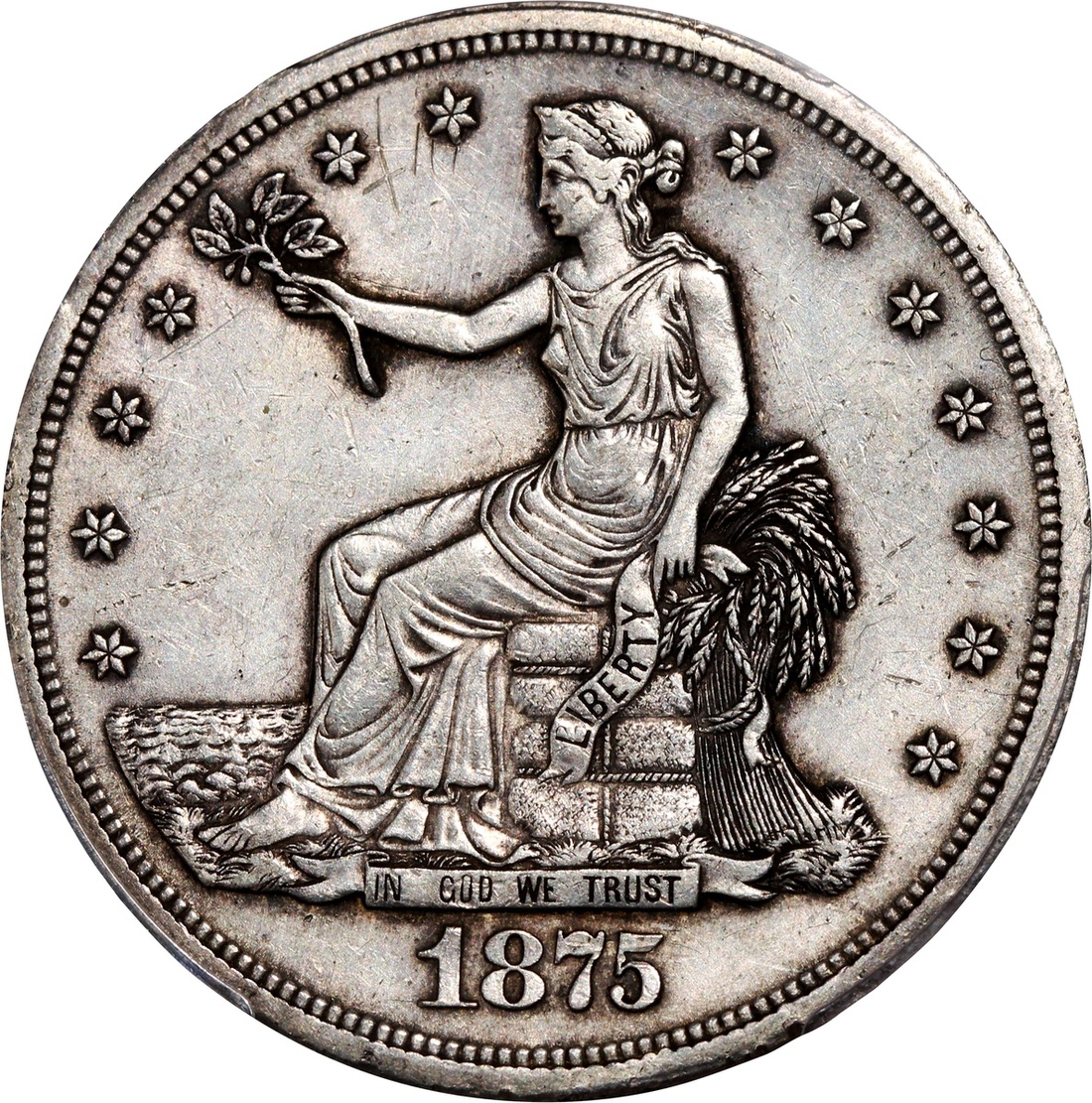 1875-S年美國貿易銀元,PCGS AU Detail,有劃痕,編號80324314