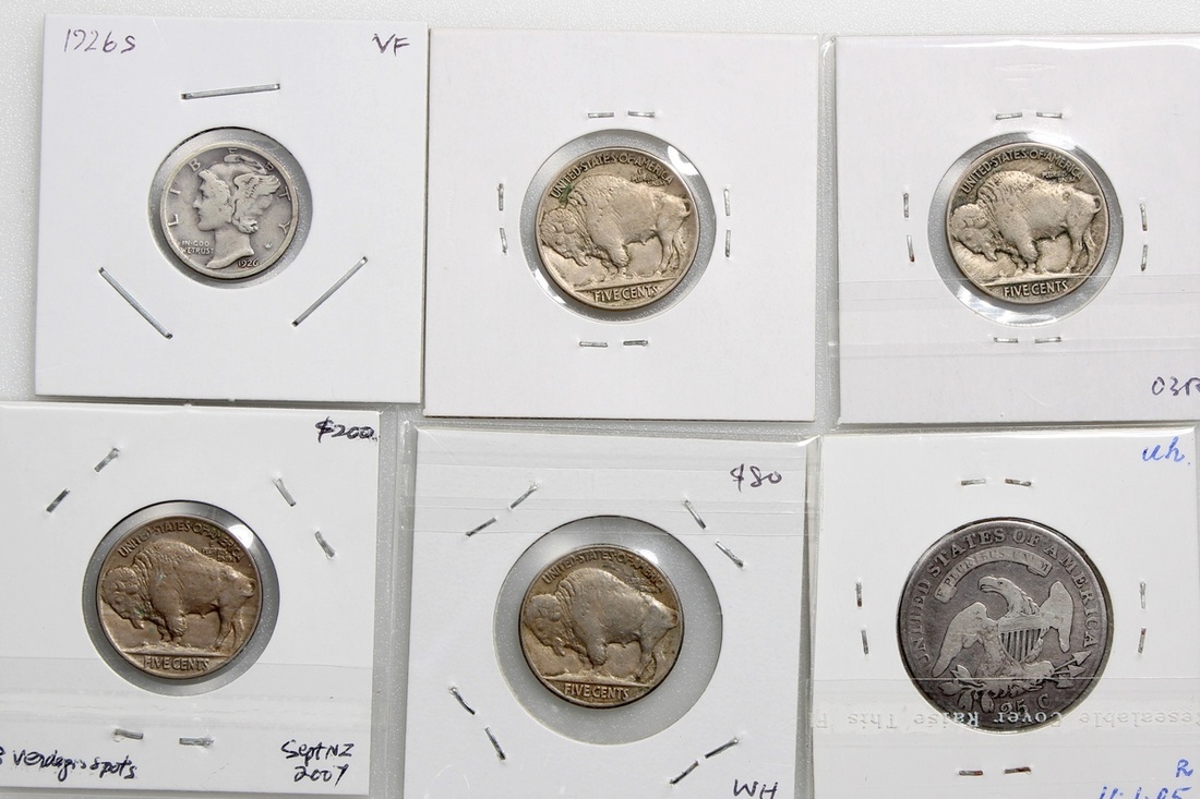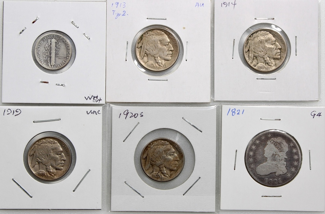 美國錢幣一組6枚,包括1926S 1毫,1913,1914,1919及1920S 5仙,及1821年25分,25分GF品相,其餘AVF,1920S為罕見年份