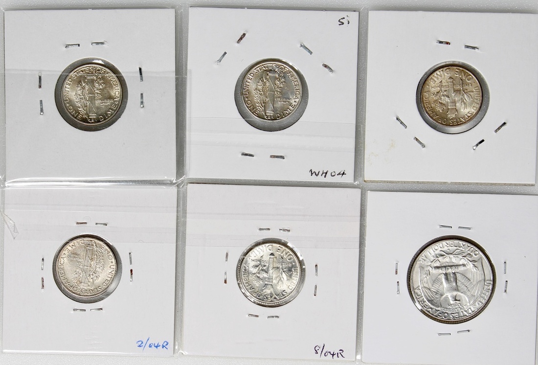 United States, group of 6, consisting of 5x silver 1 dime, 1942, 1944, 1944S, 1959D and 1964S, and 1x silver quarter dollar, 1961, uncirculated (6)