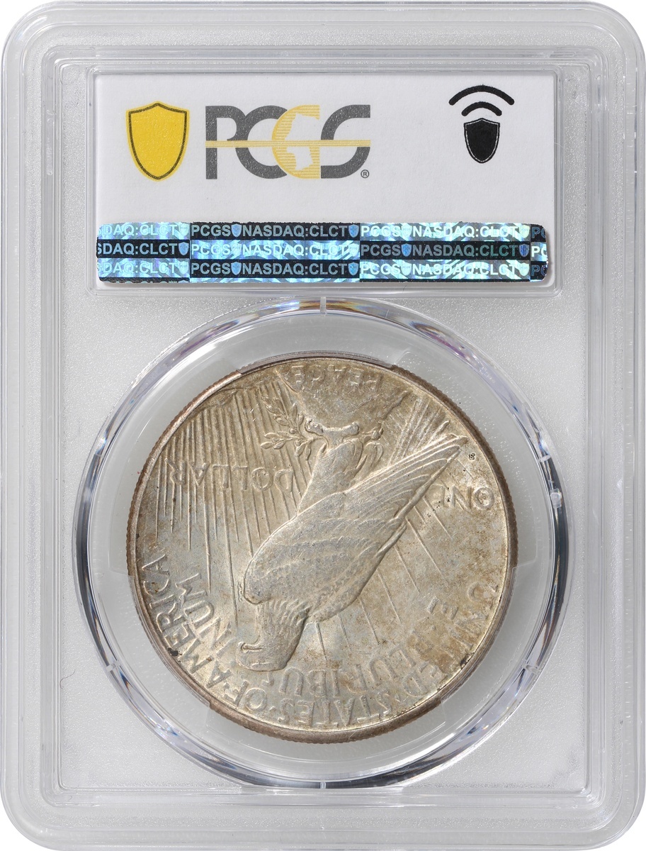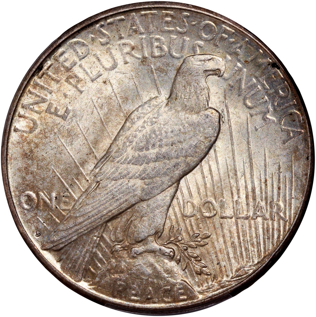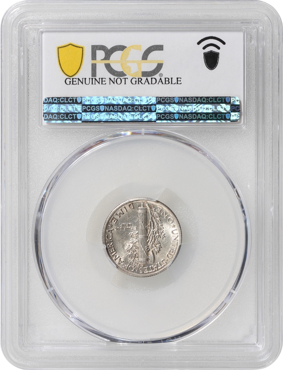 United States, silver dime, 1944-S and 1945, and $1 'Peace' dollar, 1923-S, graded PCGS Genuine Cleaned - AU Detail, MS62 and AU58, #42671619, 42671620 and #42671626 respectively. (3)