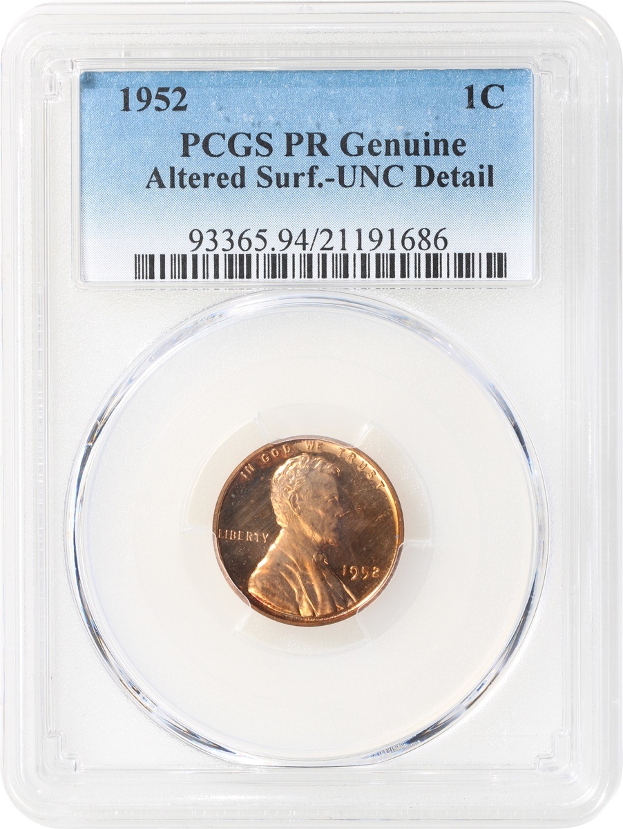 United States, copper 1 cent, 1952, PCGS PR Genuine Altered Surface - UNC Detail, #21191686.