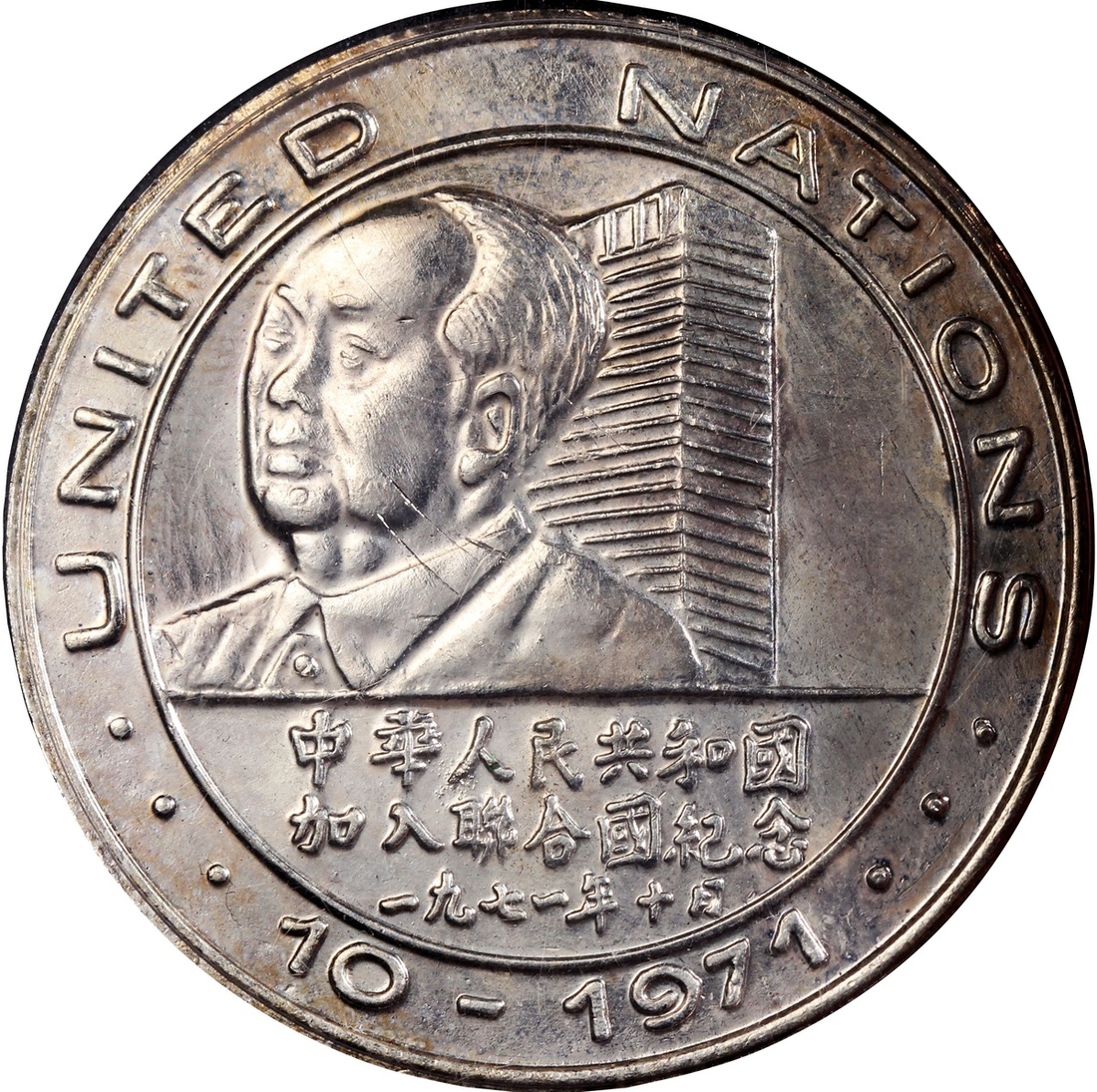 美國紀念銀章2枚一組,主題均為紀念中國加盟聯合國,各含1盎司銀,近UNC