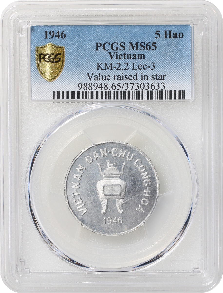 Vietnam, aluminium 5 Hao, 1946, value in raised star,