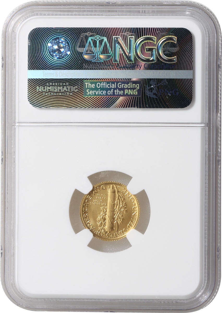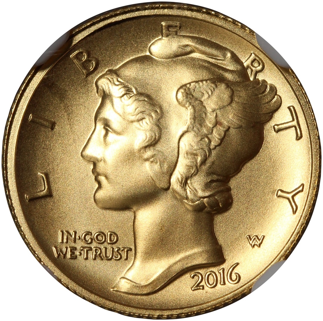2016W美國’墨丘利‘系列100周年紀念10美分金幣,首發,含1/10盎司金,NGC SP69
