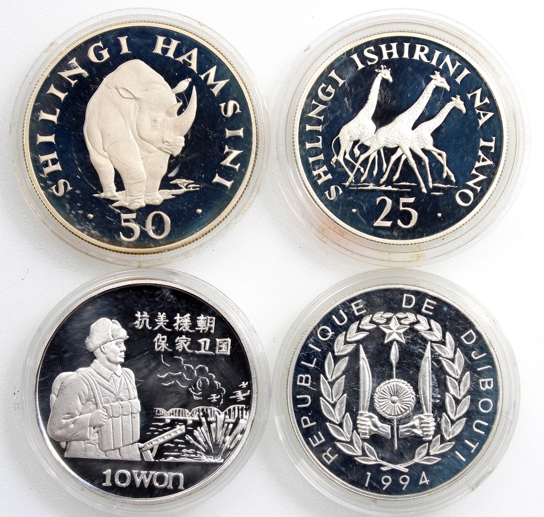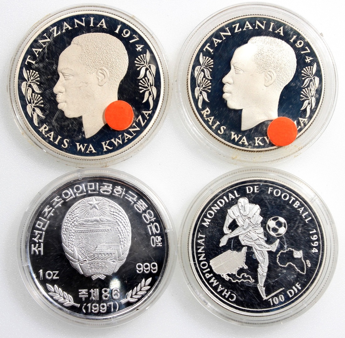 World Coins, group of 5x silver proof coins, consisting of: Djibouti, 100 Francs, 1994, World Cup, 1oz of .925 silver,