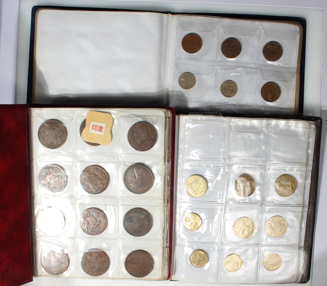 世界錢幣一組244枚存於三本硬幣冊子,主要包括鋁、銅及鎳幣,品相不一,建議預覽