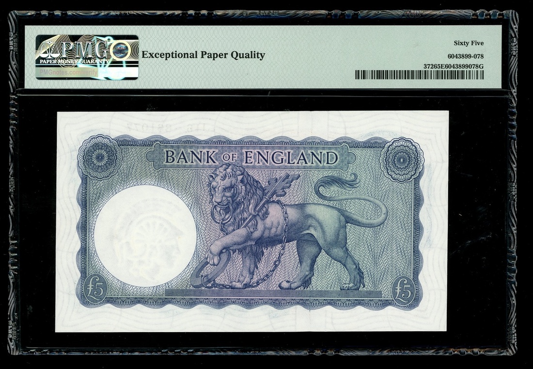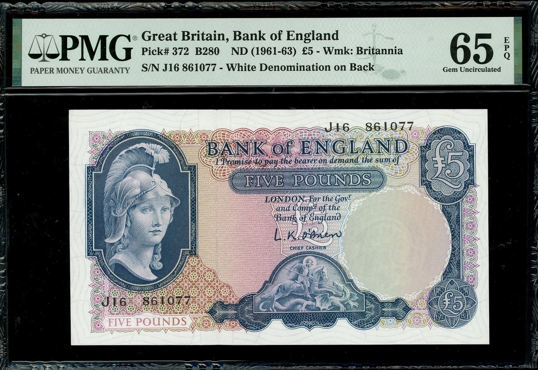 1961-1963年英倫銀行5鎊,無日期,編號J16 861077,PMG 65EPQ