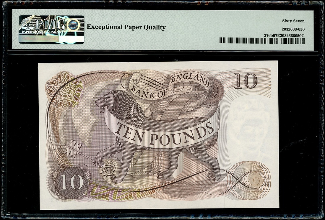 1966-1970年英倫銀行10鎊,無日期,編號A49 785742,PMG 67EPQ