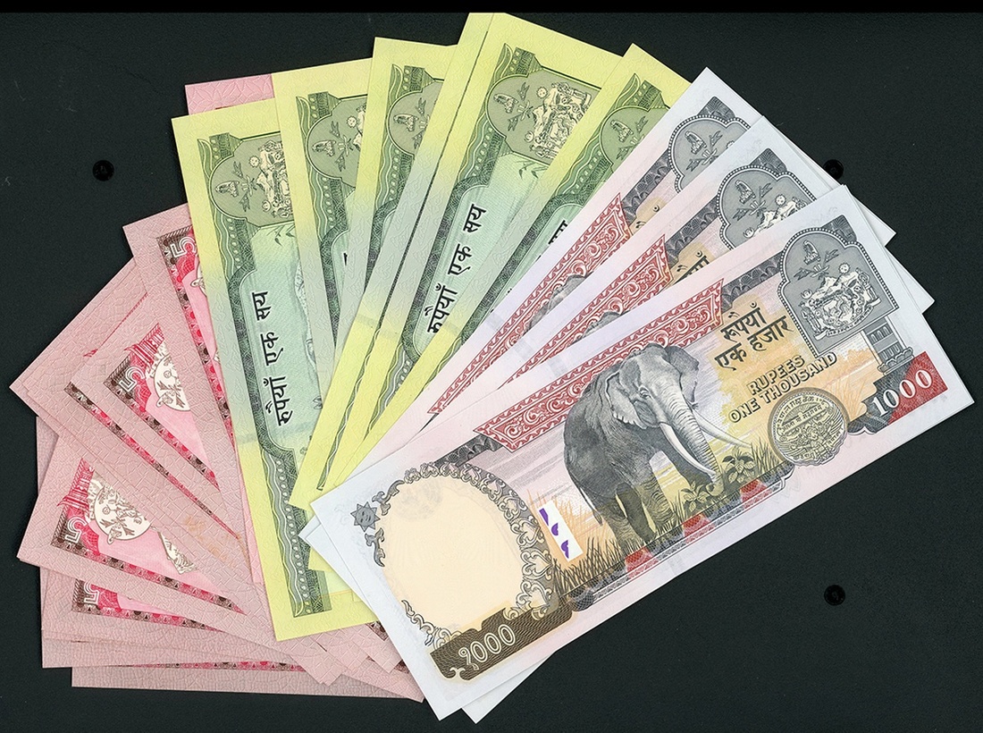 2002及05年尼泊爾一組30枚,無日期,包括5盧比13枚,20盧比2枚,100盧比7枚及1000盧比8枚,大部分EF至AU,若干近乎UNC