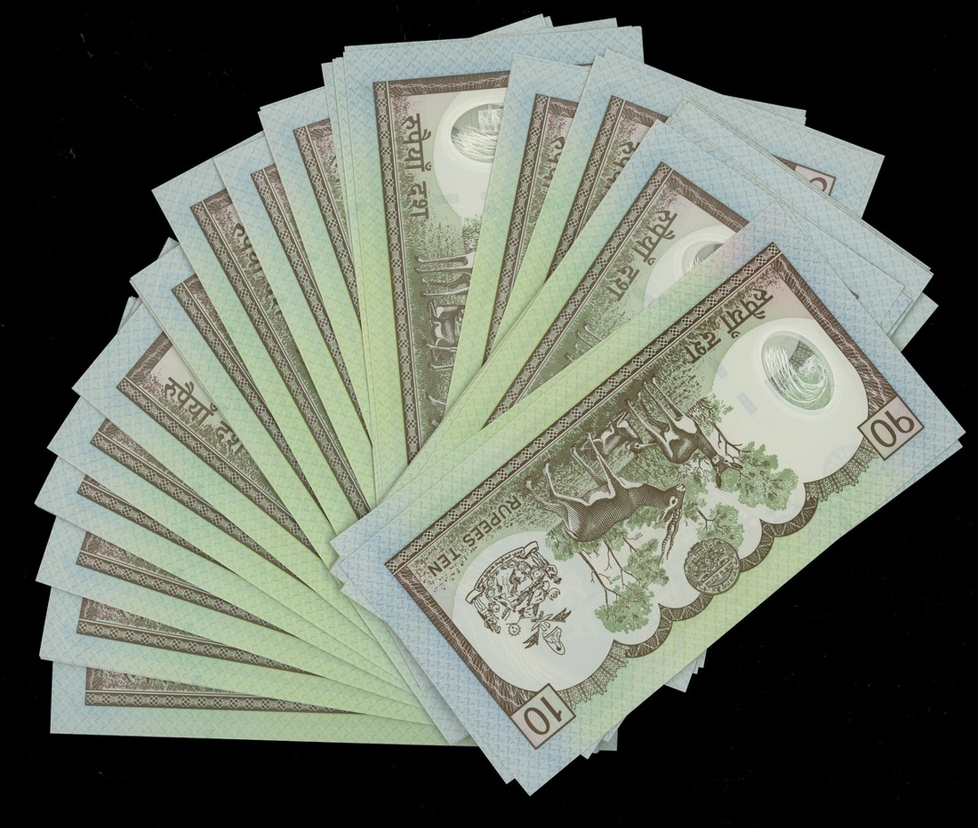 Nepal, group of 63x 10 Rupees, ND (2005-2006), includes consecutive groups, 058015, 017-035, 058331-340, and 121053-057, 059-062,