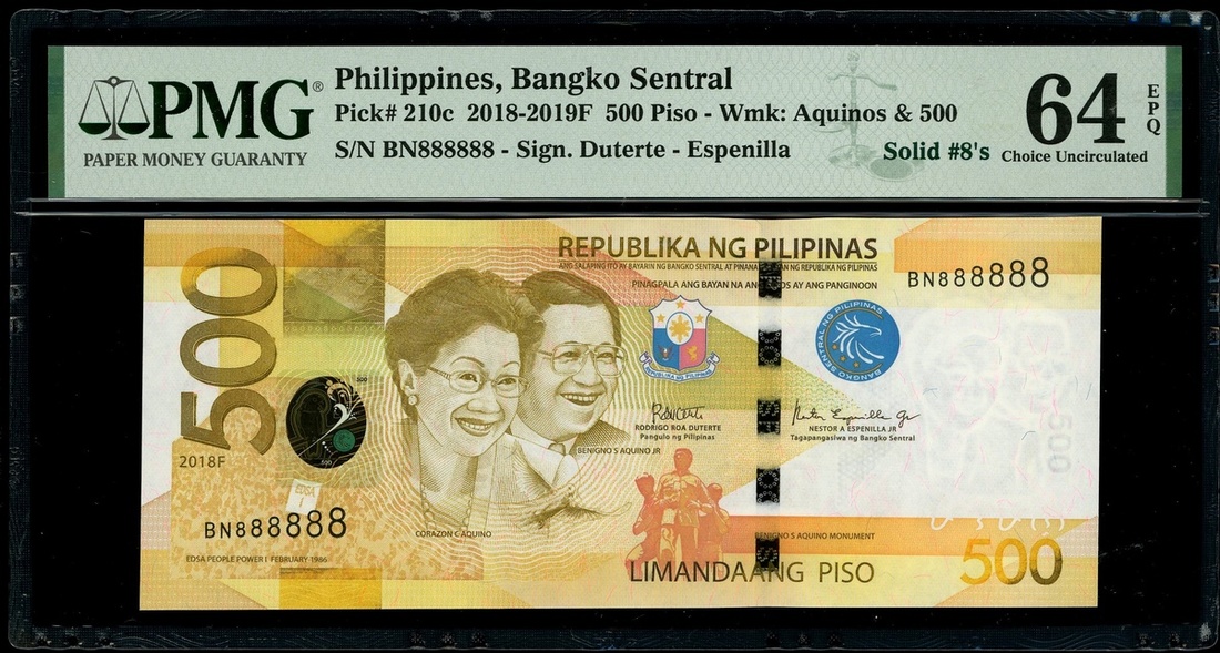 2018F菲律賓500披索,幸運號BN888888,PMG 64EPQ