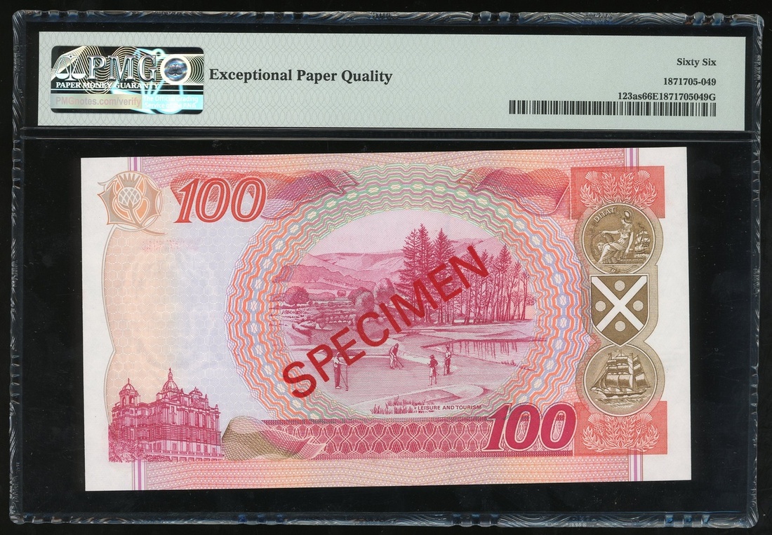1999年蘇格蘭銀行成立300週年(1695-1995)紀念100鎊樣票,AA000000,PMG 66EPQ