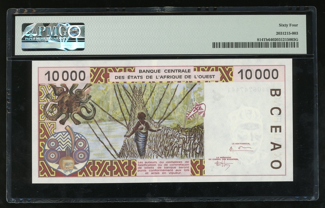 1994年西非多哥10,000法郎,編號9406747441,PMG 64